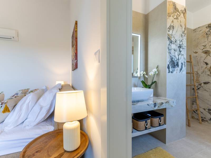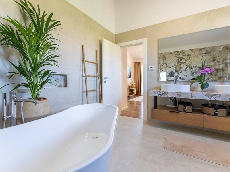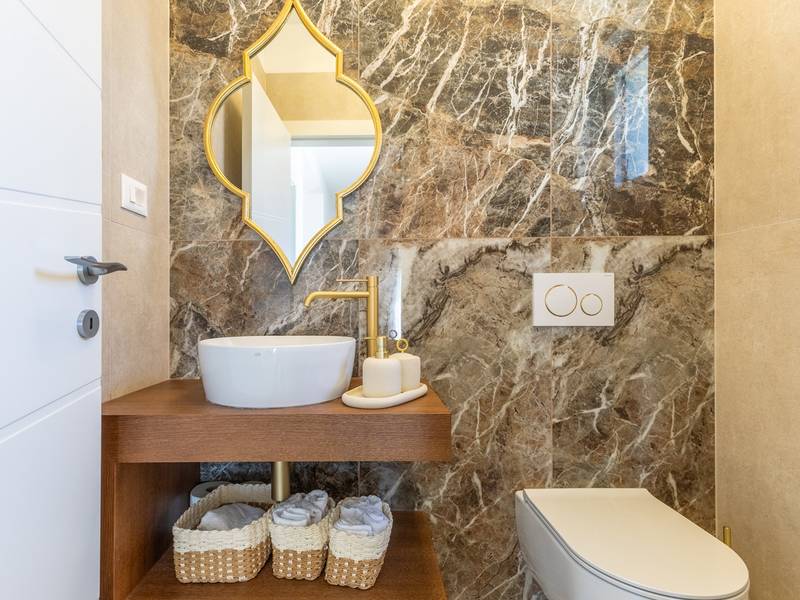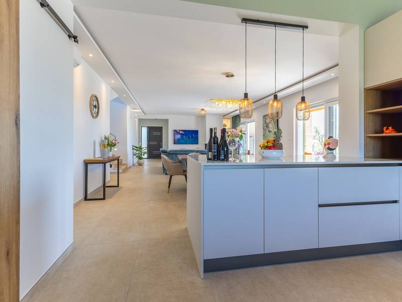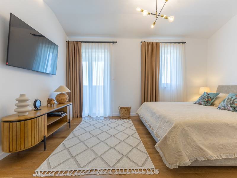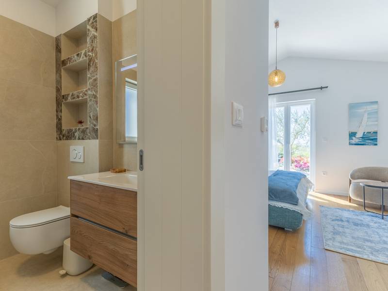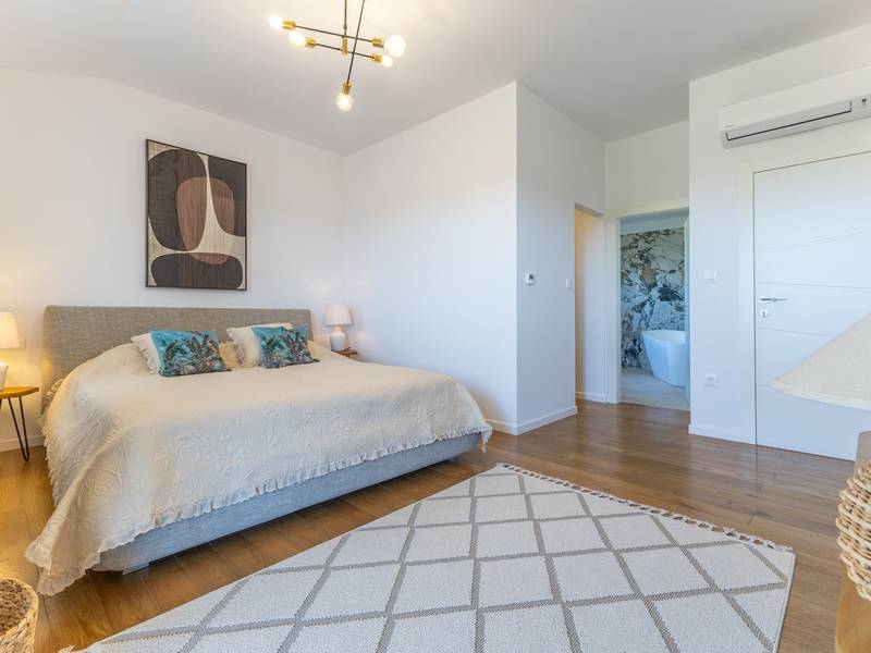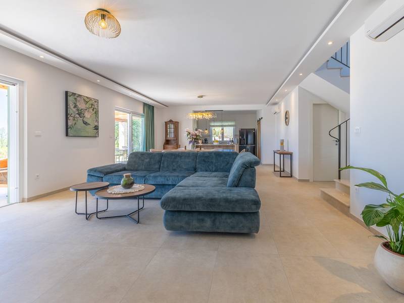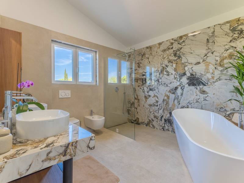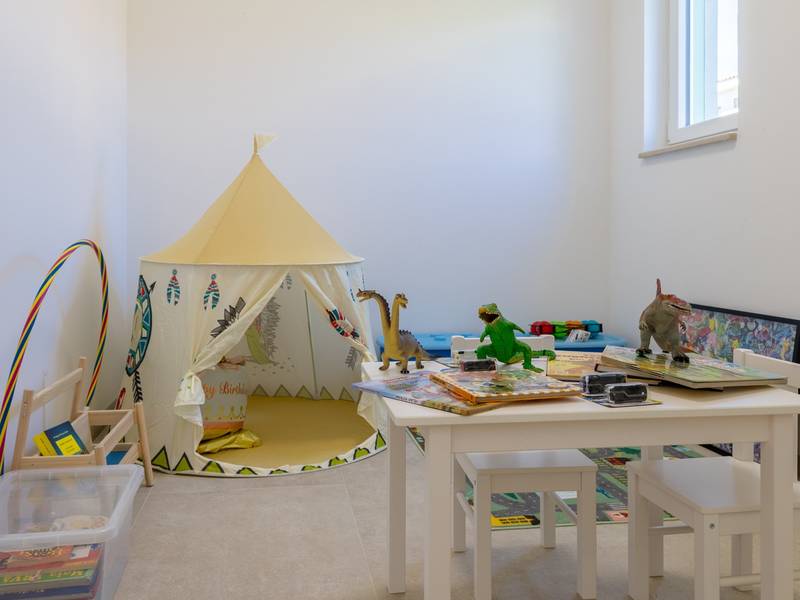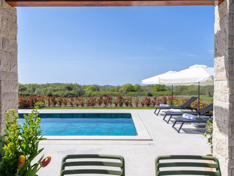 Gelegen in het rustige dorpje Kirmenjak, in de directe omgeving van Poreč, is dit moderne en elegante vakantiehuis de perfecte keuze voor een ontspannen verblijf in Istrië. Omgeven door groen en natuur, biedt het volledige rust, privacy en een betoverend uitzicht, vooral tijdens onvergetelijke zonsondergangen. Het huis is ontworpen met de nadruk op comfort en functionaliteit en is geschikt voor maximaal acht personen. Het heeft vier ruime slaapkamers, elk met een eigen badkamer, wat zorgt voor maximale privacy voor alle gasten. Het interieur is modern ingericht en van alle gemakken voorzien, en de ruime woonkamer die verbonden is met de eetkamer en moderne keuken vormt een centrale ontmoetingsplaats. Het huis is vooral waardevol vanwege de kinderspeelkamer, ideaal voor gezinnen met kinderen, evenals de buitenruimte, die zorgvuldig is ingericht om buiten te genieten. Aan de voorkant van het huis ligt een groot privézwembad (32 m2) omringd door ligstoelen en een zonneweide, perfect voor verfrissing tijdens warme zomerdagen. Privéparkeergelegenheid is ook beschikbaar voor gasten, en het hele pand straalt de harmonie uit van modern design en natuurlijke omgeving. Dit vakantiehuis is de ideale keuze voor iedereen die op zoek is naar een combinatie van luxe, comfort en authentieke Istrische sfeer, op slechts een paar minuten rijden van de zee en het pittoreske centrum van Poreč.