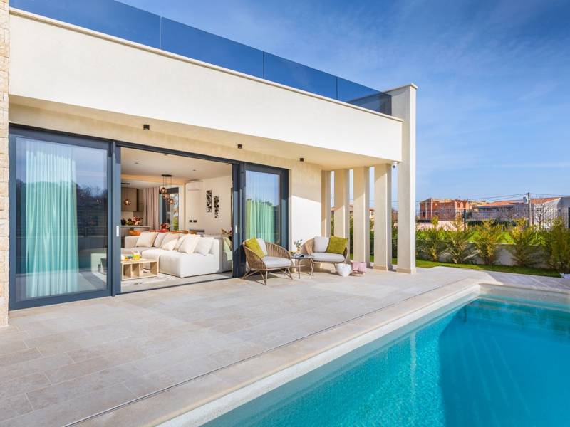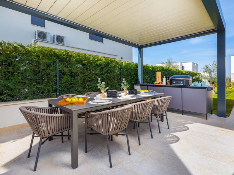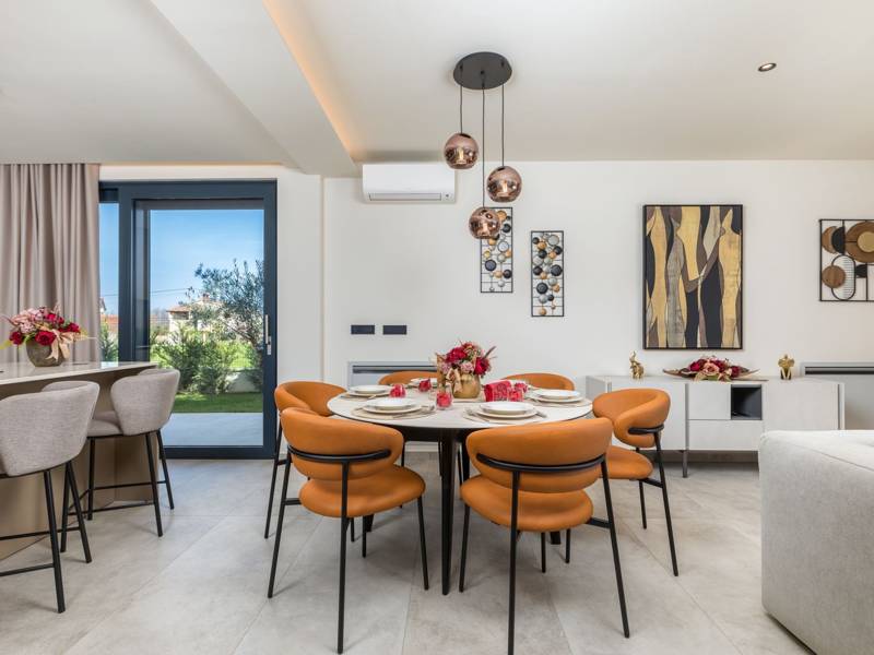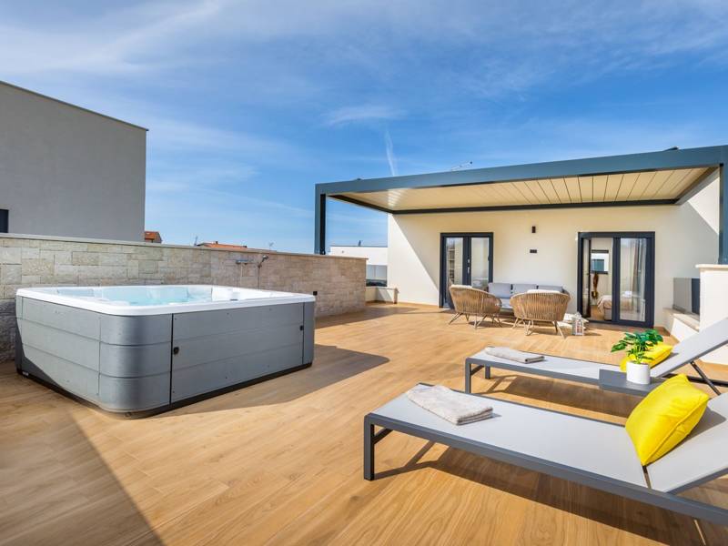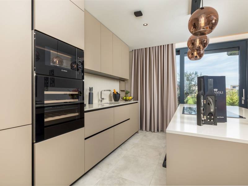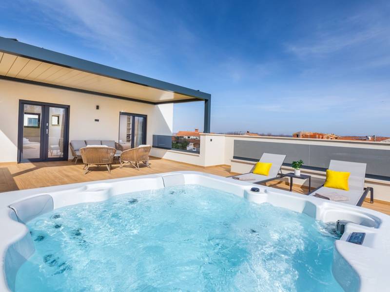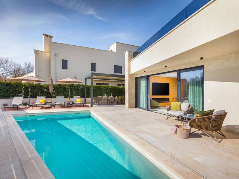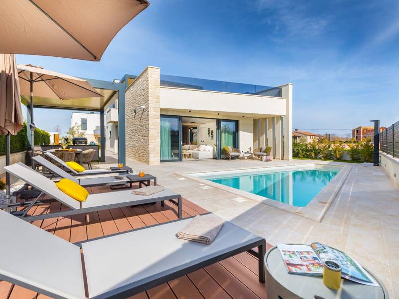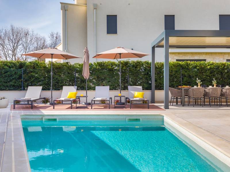 Villa Pelin ligt aan de rand van het populaire toeristische centrum van Poreč en biedt een rustig en luxueus toevluchtsoord, maar blijft toch dicht bij alle toeristische attracties die Poreč te bieden heeft. Deze prachtig ingerichte villa ligt op een perceel van 600 m² en biedt uitzicht op een weelderige groene omgeving. Het interieur van de villa is echt indrukwekkend, uitgerust met meubilair van hoge kwaliteit en stijlvol ingericht om het luxe gevoel van de ruimte te versterken. De begane grond heeft een open indeling met een gezellige woonkamer met een comfortabele bank, een grote flatscreentelevisie, een volledig uitgeruste keuken en een eethoek met directe toegang tot de tuin en het zwembad. Op dit niveau is ook een slaapkamer met een tweepersoonsbed, een en-suite badkamer en een tv. Daarnaast is er een apart toilet en een wasruimte met een wasmachine. Op de eerste verdieping zijn nog twee slaapkamers, elk met een groot tweepersoonsbed, een en-suite badkamer en een tv. Beide slaapkamers hebben toegang tot een groot balkon met een pergola en een jacuzzi, ideaal om te genieten van een glas wijn op warme zomeravonden. Buiten biedt het pand een prachtige tuin met een privézwembad, een pergola met een buitenkeuken, een eettafel en een elektrische barbecue. Buiten beschikt de villa ook over een privéparkeerplaats voor twee auto's.