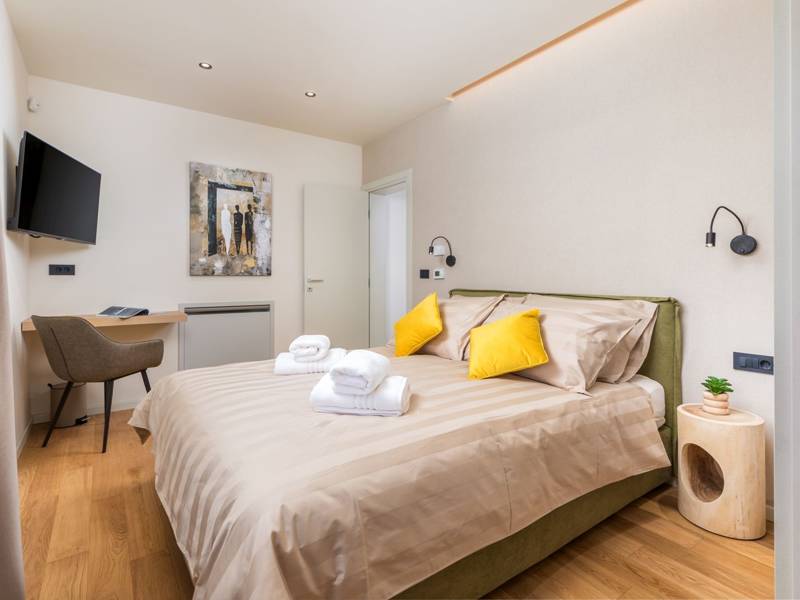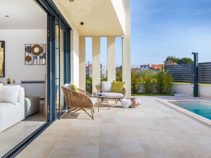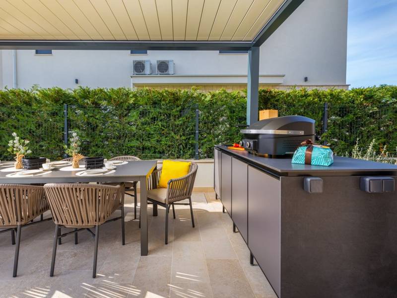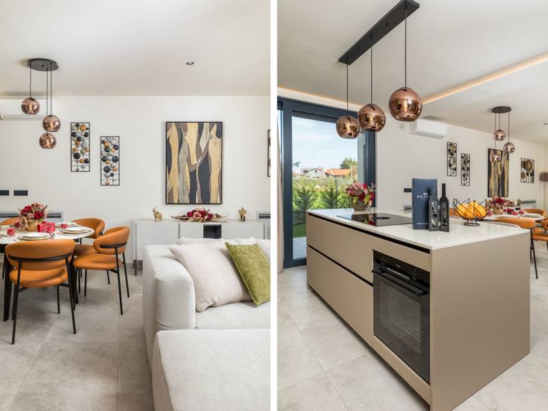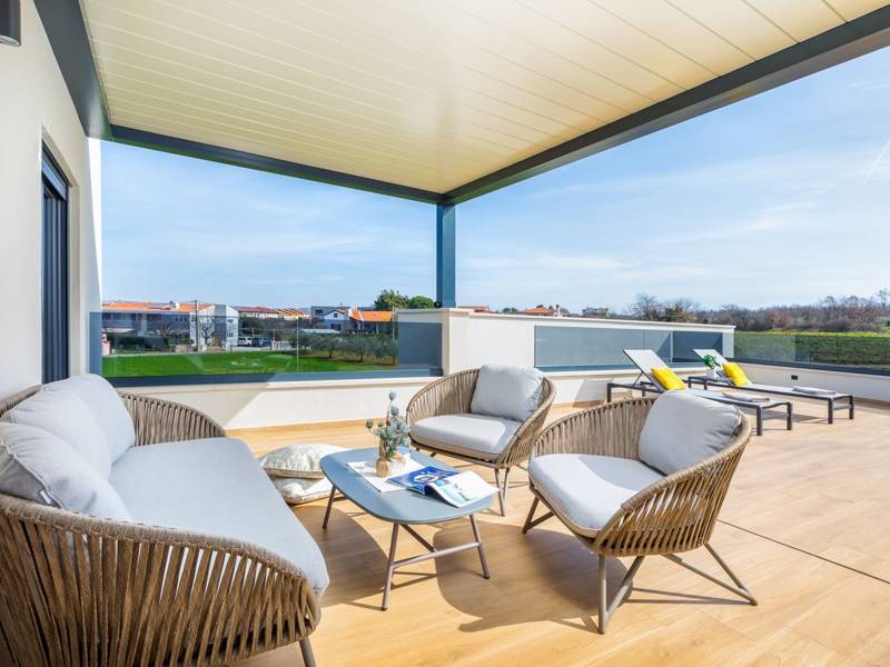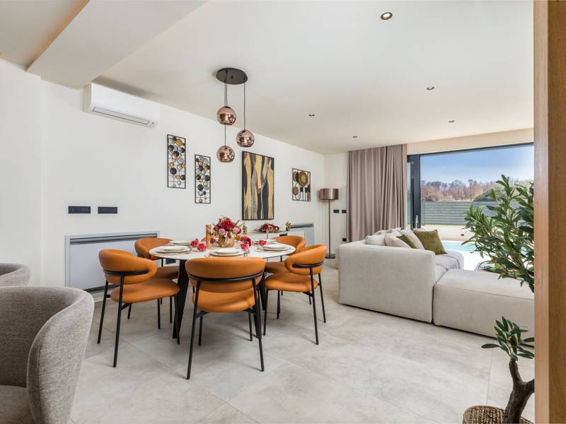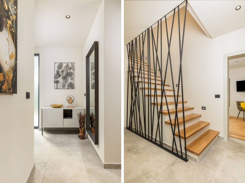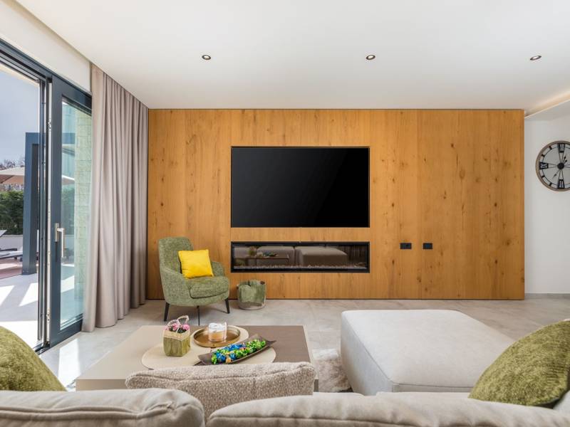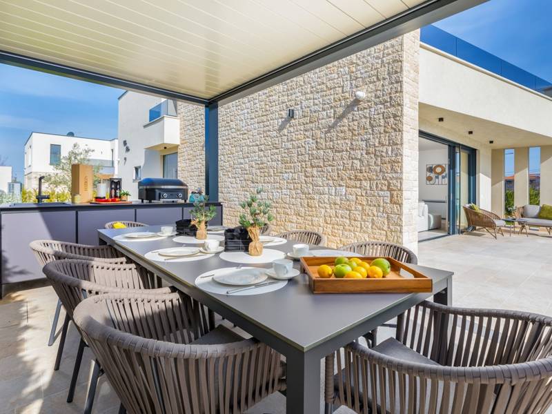 Villa Pelin ligt aan de rand van het populaire toeristische centrum van Poreč en biedt een rustig en luxueus toevluchtsoord, maar blijft toch dicht bij alle toeristische attracties die Poreč te bieden heeft. Deze prachtig ingerichte villa ligt op een perceel van 600 m² en biedt uitzicht op een weelderige groene omgeving. Het interieur van de villa is echt indrukwekkend, uitgerust met meubilair van hoge kwaliteit en stijlvol ingericht om het luxe gevoel van de ruimte te versterken. De begane grond heeft een open indeling met een gezellige woonkamer met een comfortabele bank, een grote flatscreentelevisie, een volledig uitgeruste keuken en een eethoek met directe toegang tot de tuin en het zwembad. Op dit niveau is ook een slaapkamer met een tweepersoonsbed, een en-suite badkamer en een tv. Daarnaast is er een apart toilet en een wasruimte met een wasmachine. Op de eerste verdieping zijn nog twee slaapkamers, elk met een groot tweepersoonsbed, een en-suite badkamer en een tv. Beide slaapkamers hebben toegang tot een groot balkon met een pergola en een jacuzzi, ideaal om te genieten van een glas wijn op warme zomeravonden. Buiten biedt het pand een prachtige tuin met een privézwembad, een pergola met een buitenkeuken, een eettafel en een elektrische barbecue. Buiten beschikt de villa ook over een privéparkeerplaats voor twee auto's.