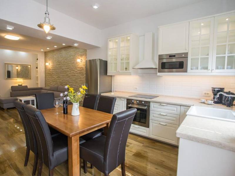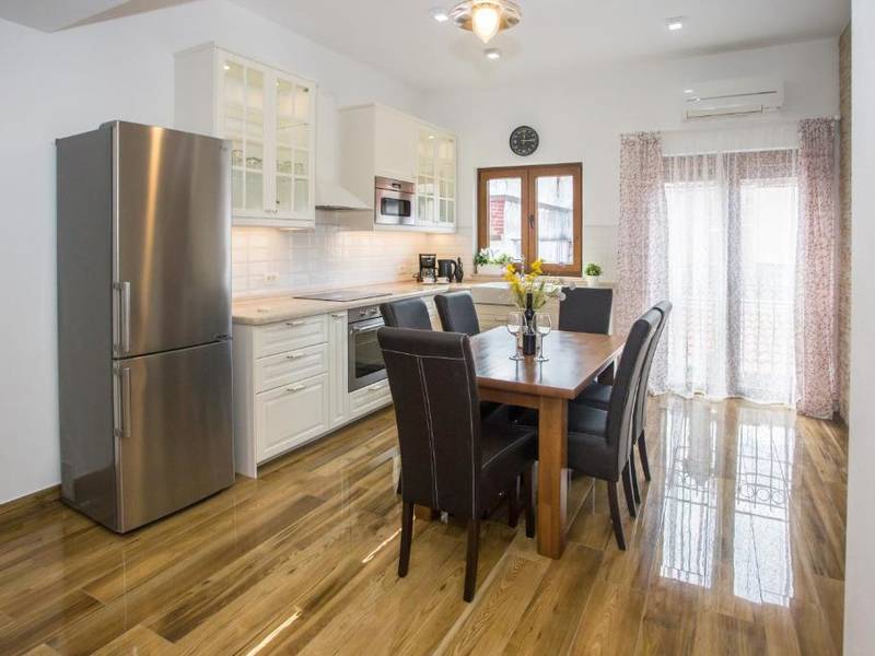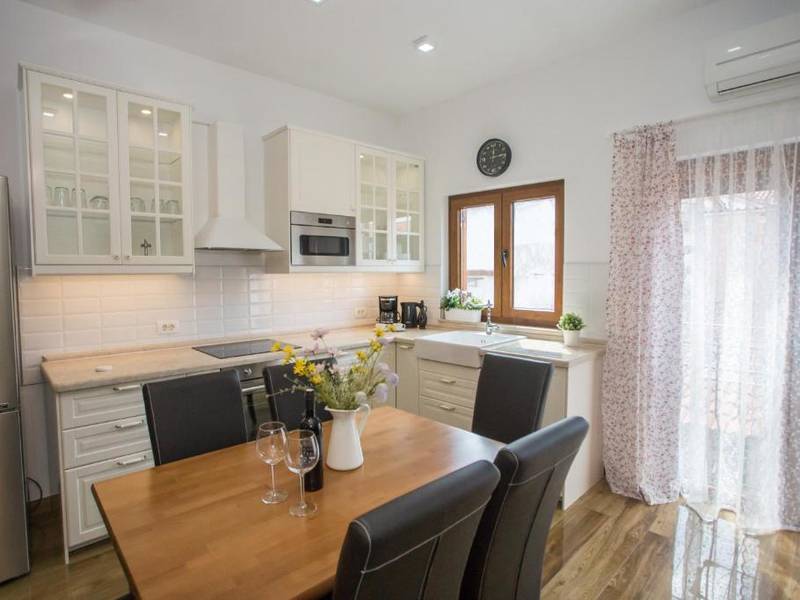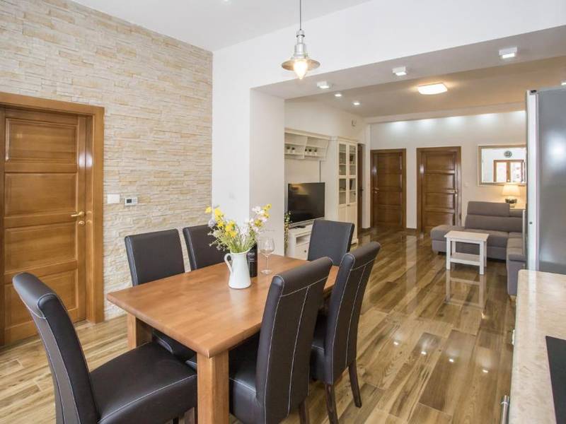 Het exclusieve appartement Magnolia is gelegen op de eerste verdieping van een gebouw in het centrum van Poreè. Appartement heeft 80m2, het is nieuw gerenoveerd met vloerverwarming, en het bestaat uit ruime woonkamer, volledig uitgeruste keuken met eettafel, twee slaapkamers en badkamer met douche en toilet. Inbegrepen in de prijs zijn: beddengoed, handdoeken, airconditioning, Wi-Fi, SAT-TV en parkeerplaats. De parkeerplaats ligt op 5 minuten loopafstand. Een ontspannen wandeling brengt je in slechts 5-10 minuten naar de stranden.