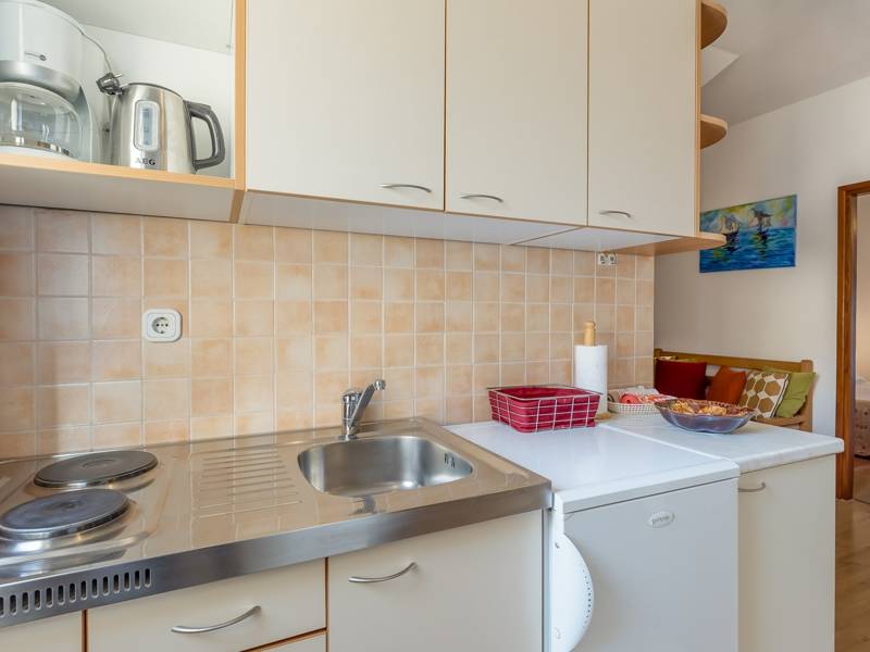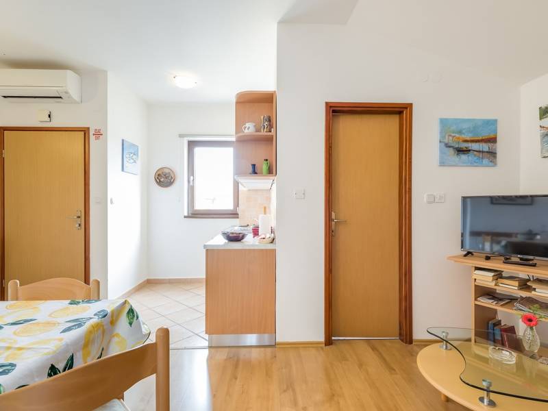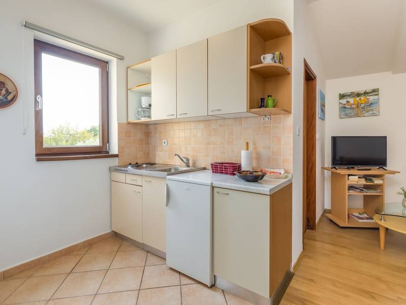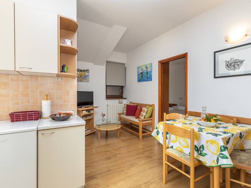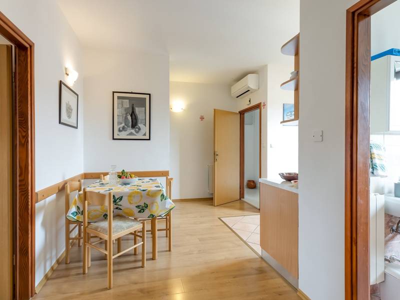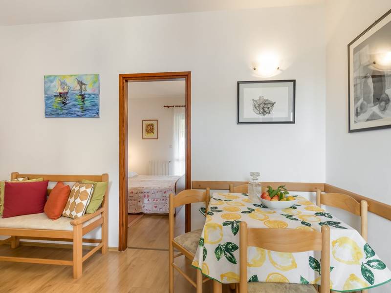 Mooi gemeubileerd appartement Ruzica II A4 is gelegen in een rustige buurt, in het zuidelijke deel van de stad Poreč. Het is geschikt voor maximaal vier personen en ligt op de eerste verdieping. Het appartement bestaat uit twee tweepersoonsslaapkamers, een badkamer met douche en een woonkamer. In het hoofdgedeelte vindt u een woonkamer met een tv, een eethoek in de hoek en een goed uitgeruste keuken met keukengerei en alle benodigde kookapparatuur. Vanuit de woonkamer kom je op het balkon met uitzicht op de groene weide en de zee - een perfecte plek om 's ochtends te genieten van een kopje koffie of een warme zomeravond met je familie of vrienden. Voor het pand is een privéparkeerplaats beschikbaar voor de gasten. Novo Naselje maakt deel uit van de stad Poreè, op 800 meter van het stadscentrum en op slechts 400 meter van de Adriatische Zee.
