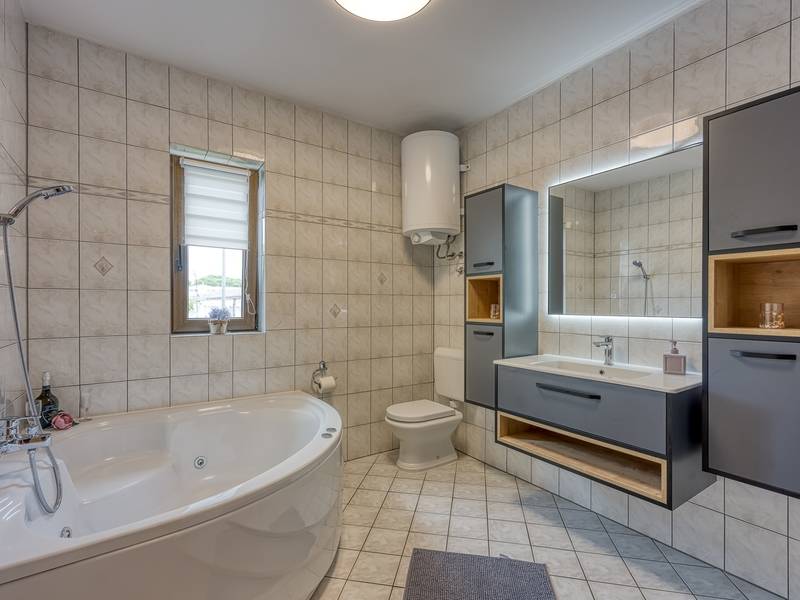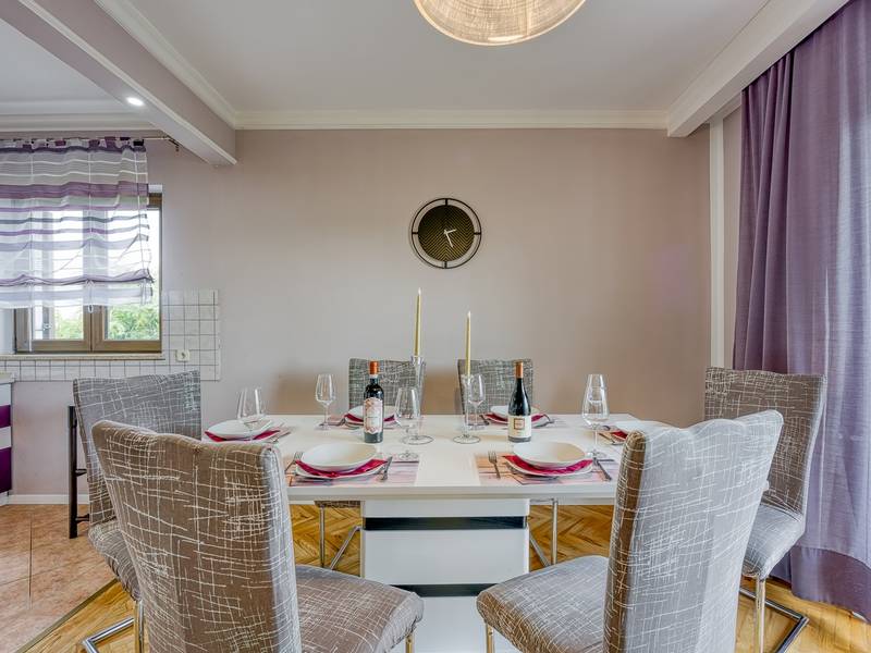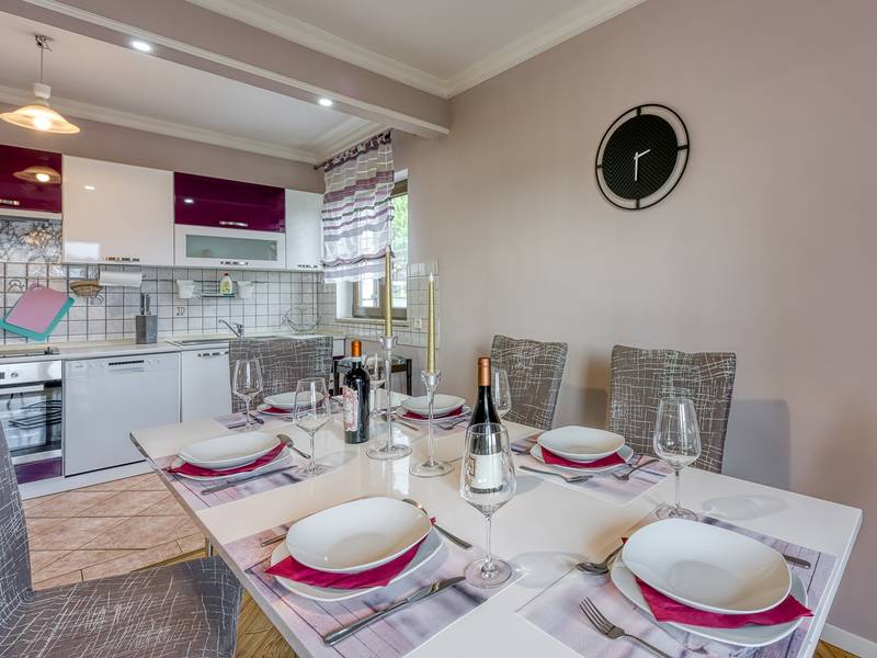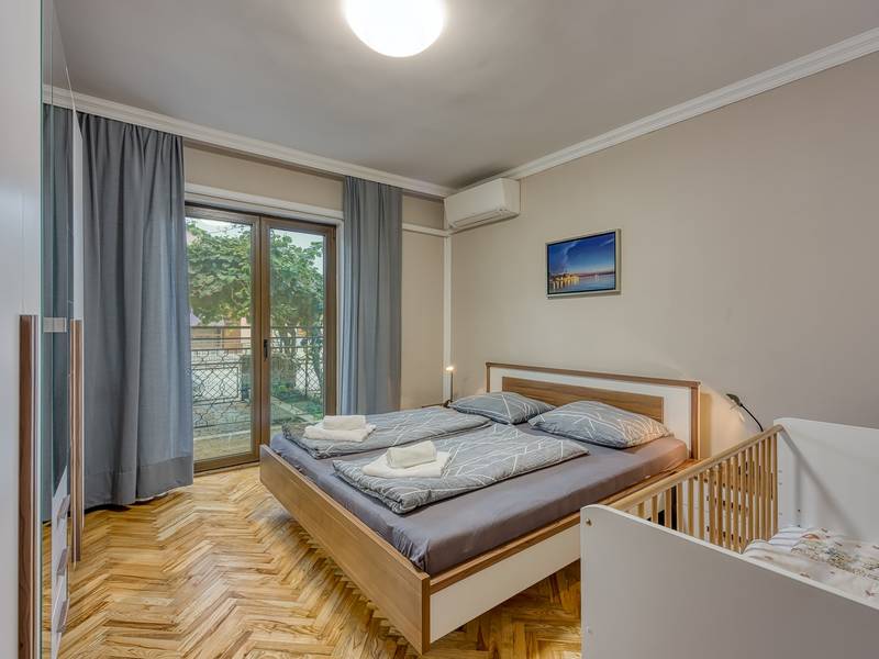 Prachtig ingericht appartement Dolce Maro A6 met vier sterren ligt ten noorden van het centrum van Poreč, op slechts 1 km van de zee. Het is een onderdeel van appartementencomplex. Het appartement is geschikt voor maximaal 6 personen. Het heeft drie slaapkamers met airconditioning, twee van hen hebben een tweepersoonsbed en een slaapkamer heeft twee aparte bedden. Een babybedje is beschikbaar op aanvraag. Eén slaapkamer heeft een ingang naar het privéterras waar je in de zomer 's avonds kunt genieten. In de woonkamer is er een luxe zithoek met TV. Naast de woonkamer is er een volledig uitgeruste moderne keuken met alle benodigde apparatuur en een eethoek voor 6 personen. Vanuit de eethoek kom je op het balkon, vanwaar je de gemeenschappelijke tuin kunt zien. Het appartement heeft een badkamer met douche en een groot bad. Appartement Dolce Maro is volledig voorzien van airconditioning. Een privéparkeerplaats staat tot je beschikking.