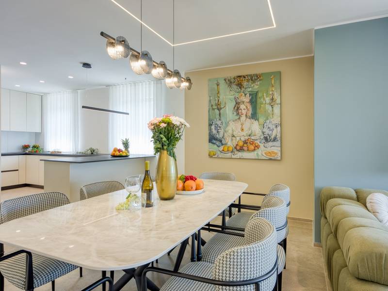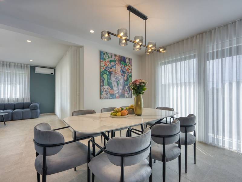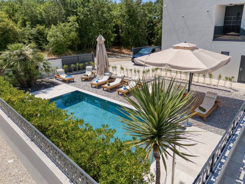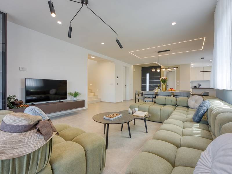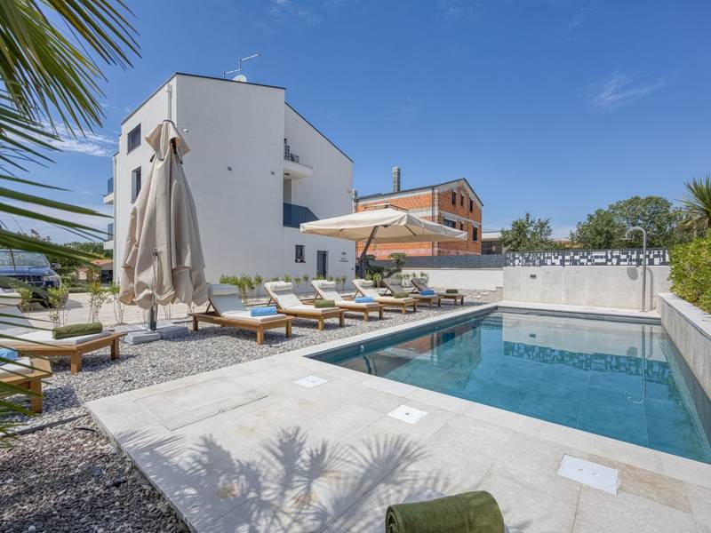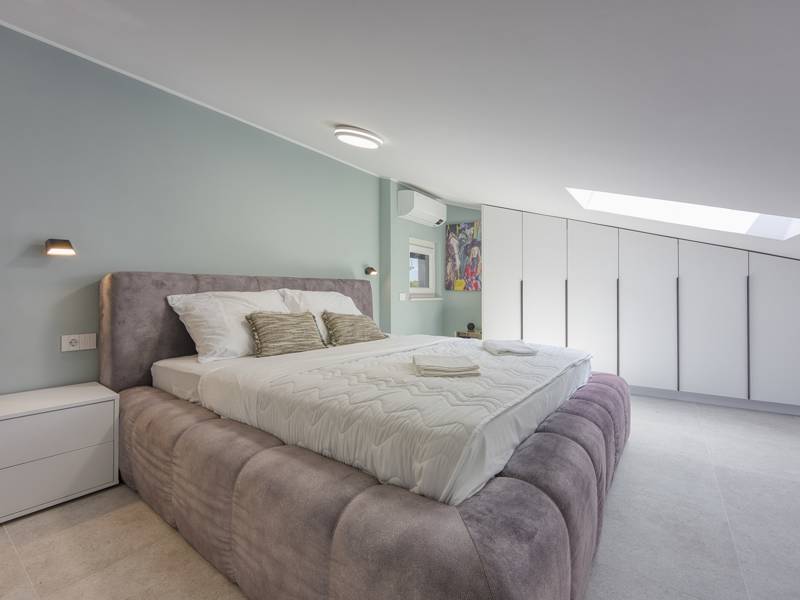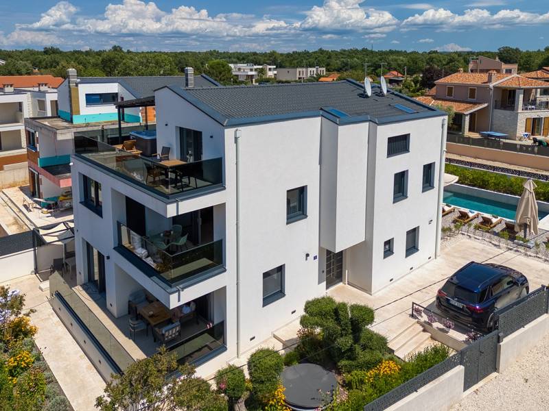 Gelegen in een rustige omgeving op slechts 2 km van het strand en het centrum van Poreč, is dit luxe en ruime vakantiehuis ideaal voor grotere gezinnen of groepen vrienden die op zoek zijn naar comfort, ruimte en privacy. Het huis bestaat uit twee aparte wooneenheden verspreid over meerdere verdiepingen en beschikt in totaal over zes slaapkamers en zes badkamers, waardoor een comfortabel en ongestoord verblijf gegarandeerd is. De eerste wooneenheid bestaat uit een woonkamer, een volledig uitgeruste keuken en twee slaapkamers, waarvan één met een eigen badkamer en de andere met een badkamer naast de kamer. De tweede wooneenheid beslaat twee verdiepingen - op de eerste verdieping is er een woonkamer, keuken en twee slaapkamers, elk met een eigen badkamer. De tweede verdieping heeft een extra woonkamer en twee slaapkamers, een met een eigen badkamer en de andere met een badkamer naast de kamer. Het huis is uitgerust met alles wat je nodig hebt voor een comfortabel verblijf - elke kamer is voorzien van airconditioning en SAT-TV. Daarnaast zorgt centrale verwarming ervoor dat het huis gezellig is tijdens de wintermaanden. Gratis Wi-Fi, privéparkeergelegenheid, twee volledig uitgeruste keukens en meerdere woongedeeltes zorgen voor extra comfort. Geniet van de prachtige groene tuin, ontspan op het ruime terras op de begane grond met een grill, of kom tot rust op het dakterras met een whirlpool en een prachtig uitzicht. Een echt hoogtepunt is het privézwembad van 32 m2 met comfortabele ligstoelen - de perfecte plek om te zonnebaden, op te frissen en te genieten van warme zomerdagen. Dit pand biedt de perfecte combinatie van rust, privacy en de nabijheid van de zee en alle essentiële voorzieningen - een ideale plek voor een zorgeloze vakantie, zowel in de zomer als in de winter. Let op: Jeugdgroepen zijn niet toegestaan in deze accommodatie.