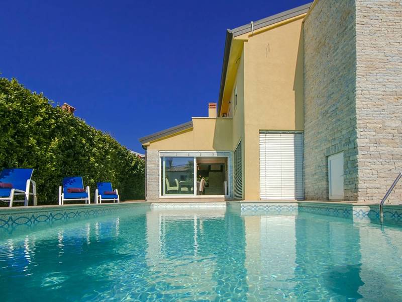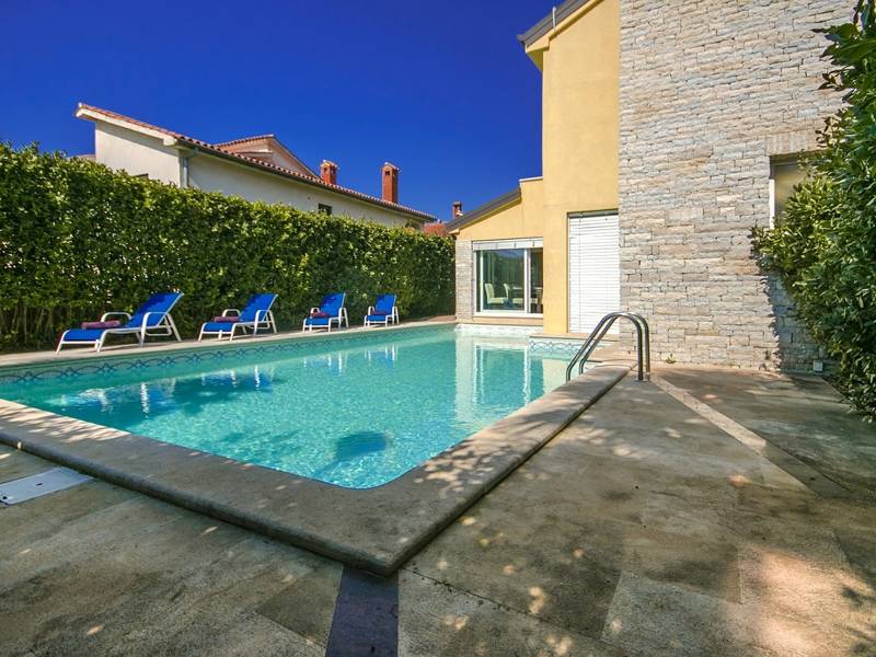 Als je op zoek bent naar een ideale rustige vakantie met het gezin, dan is Villa Lidija de juiste plek voor jou. De ligging nabij het centrum van de stad, met een prachtig panoramisch uitzicht op de omgeving en het uitzicht op zee, bieden rust en sereniteit. Villa Lidija is de optimale plek voor families of jonge groepen mensen, bestaande uit 5 slaapkamers, elk met een eigen badkamer. Het interieur van de villa is modern en comfortabel ingericht, met alle nodige voorzieningen voor een zorgeloze vakantie. De begane grond bestaat uit 1 slaapkamer, een volledig uitgeruste keuken, een grote woonkamer met directe toegang tot het grote buitenzwembad. Er zijn ook twee badkamers. De moderne open keuken/eet/woonkamer heeft een grote open haard, ideaal voor gezellige familieavonden. De woonkamer heeft een directe toegang tot de buitenruimte en het 60 m2 grote zwembad. Op de begane grond is een speelkamer met biliard en voetbaltafel. De eerste verdieping bestaat uit 3 tweepersoonsslaapkamers, 3 badkamers en een aparte garderobekamer. De tweede verdieping bestaat uit 1 slaapkamer met tweepersoonsbedden met eigen woongedeelte, badkamer, kleine keuken en balkon. Het balkon biedt direct toegang tot het balkon met een prachtig panoramisch uitzicht over de stad en de zee. Er is genoeg ruimte om rond het grote en uitnodigende zwembad te zonnebaden en te ontspannen. De eethoek buiten, biedt een plek waar u kunt genieten van uw familie-avonden, het uitproberen van lokale gerechten bereid op de BBQ. Parkeergelegenheid voor 3 auto's bevinden zich in de afgesloten privétuin...