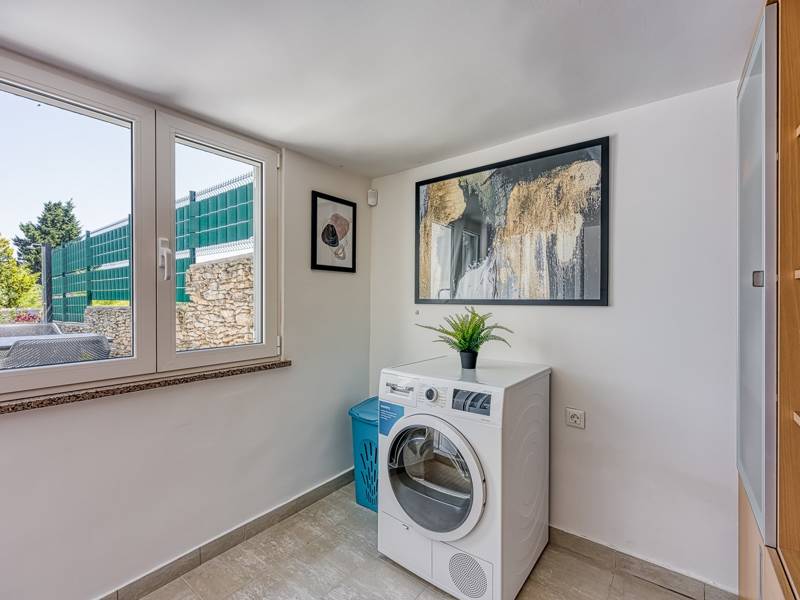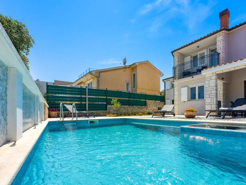 Breeze - ontdek het perfecte toevluchtsoord voor uw vakantie in dit prachtig ingerichte vakantiehuis gelegen in het pittoreske Premantura. Dit luxe huis biedt alles wat je nodig hebt voor een onvergetelijk verblijf in Istrië, waaronder een modern interieur, een privézwembad met een jacuzzi en uitzicht op zee. Het huis is verdeeld over twee verdiepingen en biedt plaats aan maximaal acht gasten in vier elegant en modern ingerichte slaapkamers. Drie moderne badkamers bieden alle benodigde faciliteiten, waaronder douchecabines en een wasmachine. Voor complete ontspanning staan een privéjacuzzi en een sauna tot je beschikking. Deze wellnessfaciliteiten zijn ontworpen om je de ultieme sfeer te bieden en je te helpen volledig te ontspannen tijdens je verblijf. Het privézwembad wordt omringd door een prachtig aangelegde mediterrane tuin, ideaal om te zonnebaden en te genieten van warme zomerdagen. Een ruim terras met comfortabele ligstoelen en buitenmeubilair is de perfecte plek om te socializen en buiten te eten, terwijl je geniet van het uitzicht op zee. Op slechts 500 meter van het huis ligt het strand, waardoor je gemakkelijk toegang hebt tot de kristalheldere zee en alle zeeactiviteiten.