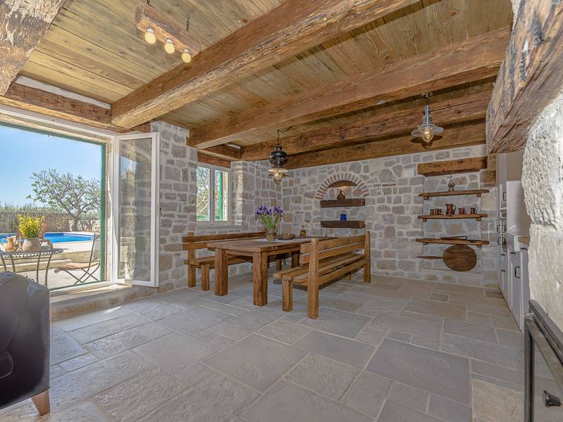 Villa Lipa is een traditioneel, stenen, mediterraan huis gelegen op een groot perceel. Het meubilair is met de hand gemaakt van eeuwenoud Slavonisch eikenhout en het huis is ingericht met veel originele gebruiksvoorwerpen van onze voorouders, die gebruikt werden voor het werk in huis, op het land of op zee. Op de begane grond is er een hoofdruimte met houten balken en traditionele stenen muren. Het bestaat uit een woonkamer, volledig uitgeruste keuken en een open haard voor een gezellige sfeer. Villa Lipa heeft ook drie slaapkamers met tweepersoonsbedden, een badkamer met wasmachine en een gastentoilet. De slaapkamers bevinden zich op de tweede verdieping en hebben uitzicht op het zwembad. In de achtertuin van het huis ligt een groot zwembad met zitgedeelte. De privétuin is volledig omheind. Privlaka is een schilderachtig toeristen- en vissersdorpje gelegen op een ruim, vlak schiereiland. Het wordt aan drie kanten omsloten door de kristalheldere zand- en mantelstranden en is de belangrijkste verbinding tussen de oudste Kroatische koningsstad Nin in het noordoosten en het eiland Vir in het westen. Aan de regionale weg Zadar-Nin-eiland Vir.
