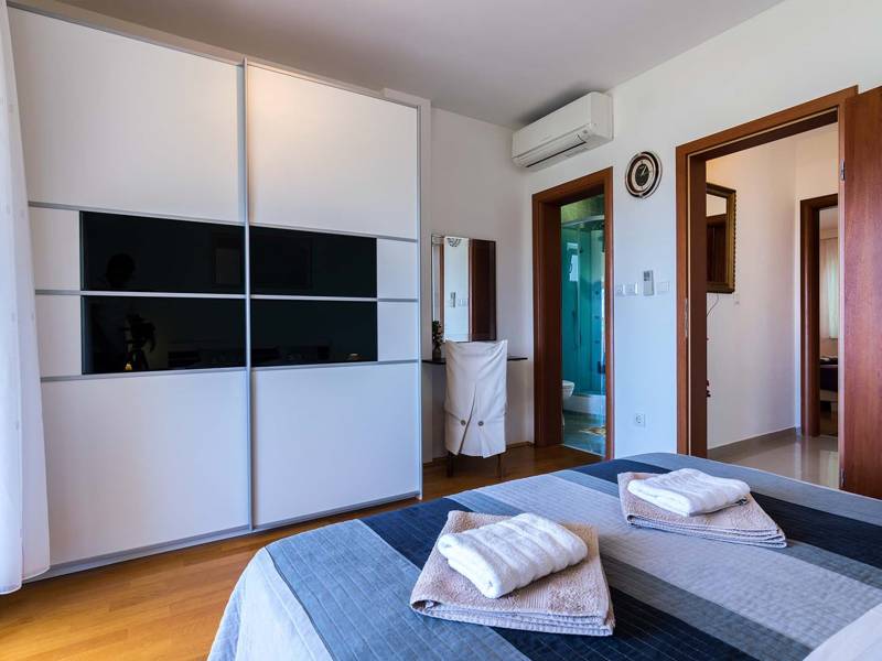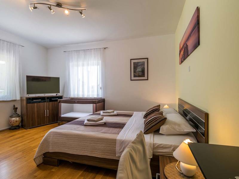 Verwen jezelf met totale ontspanning en ontsnap aan een stressvol dagelijks leven in de privacy van je vredige oase - Villa Oaza. Het huis en de tuin zijn geschikt voor een familievakantie, met een speeltuin in de achtertuin, een binnen- en buitenhaard voor de barbecue en een verwarmd zwembad dat zelfs in de koudere maanden de mogelijkheid biedt om te zwemmen. Naast het zonnige zwembad staan comfortabele ligstoelen en een tuinschommelstoel. Een extra voordeel van het huis is de mogelijkheid om huisdieren mee te nemen. De capaciteit van het huis is tien personen - acht in de vier slaapkamers en twee op extra bedden. De villa biedt ook fitness, dus naast ontspanning is er ook een ruimte om te sporten. Er is ook een recreatiegebied vlakbij het huis met trim- en fietspaden - het Parkbos Šijanska šuma. Sommige accommodaties laten geen jeugdgroepen toe. Als je een accommodatie boekt als een groep jongeren, neem dan contact op met ons agentschap voordat je de reservering maakt om te controleren of de gevraagde accommodatie jullie verblijf toestaat.