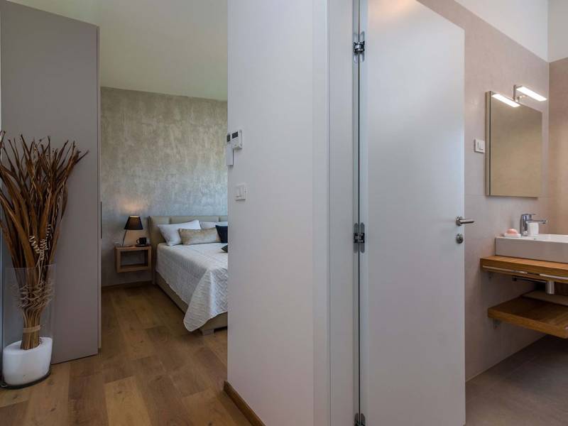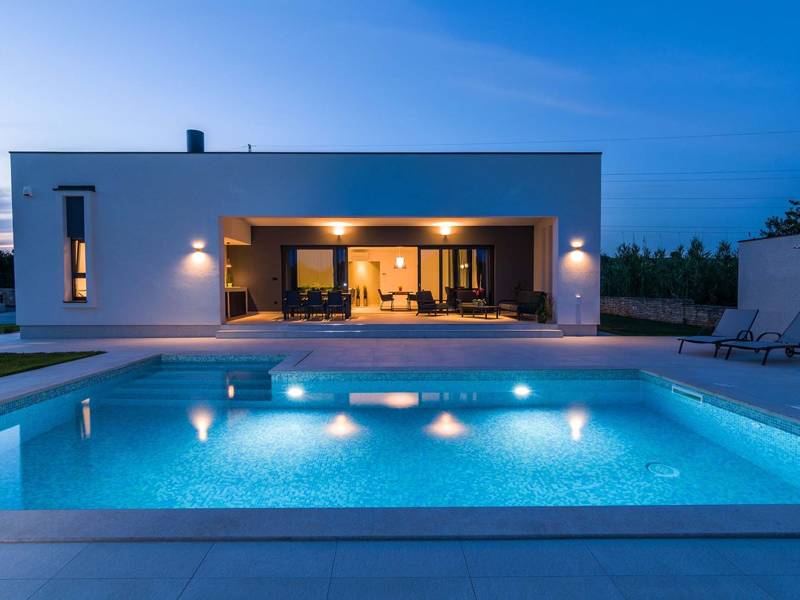 Villa Polei is een mooi, modern vakantiehuis in Valmade, een buitenwijk van de stad Pula. Dit is echt een ideaal huis voor maximaal 6 personen. Het heeft een aangelegde, volledig omheinde tuin van 1300 m2 en dit biedt de mogelijkheid om optimaal te genieten van privacy en groen. Het strekt zich uit over één verdieping met een binnenoppervlak van 180 m2 en garandeert onze gasten een hoog niveau van comfort. Met zijn moderne luxe details is het een zeer aantrekkelijk vakantiehuis. Het heeft twee slaapkamers en twee badkamers, een grote woonkamer en een volledig uitgeruste keuken met een ruime eethoek. Wat je vooral enthousiast zal maken is de buitenruimte met grill, zwembad, tuinmeubelen en ligstoelen. Onder het overdekte terras staat een eettafel met uitzicht op het zwembad en de lokale olijfsoorten, waar je je ontspannen dagen in volledige ontspanning kunt doorbrengen. Sommige accommodaties laten geen jeugdgroepen toe. Als je als groep jongeren een accommodatie boekt, neem dan contact op met ons agentschap voordat je de reservering maakt om te controleren of de gevraagde accommodatie jullie verblijf toestaat.