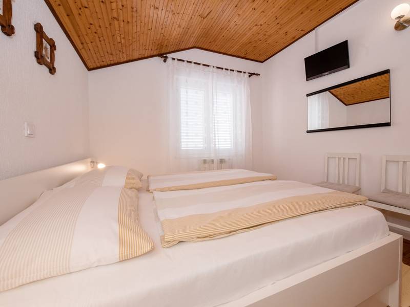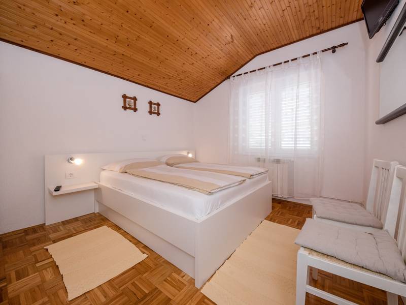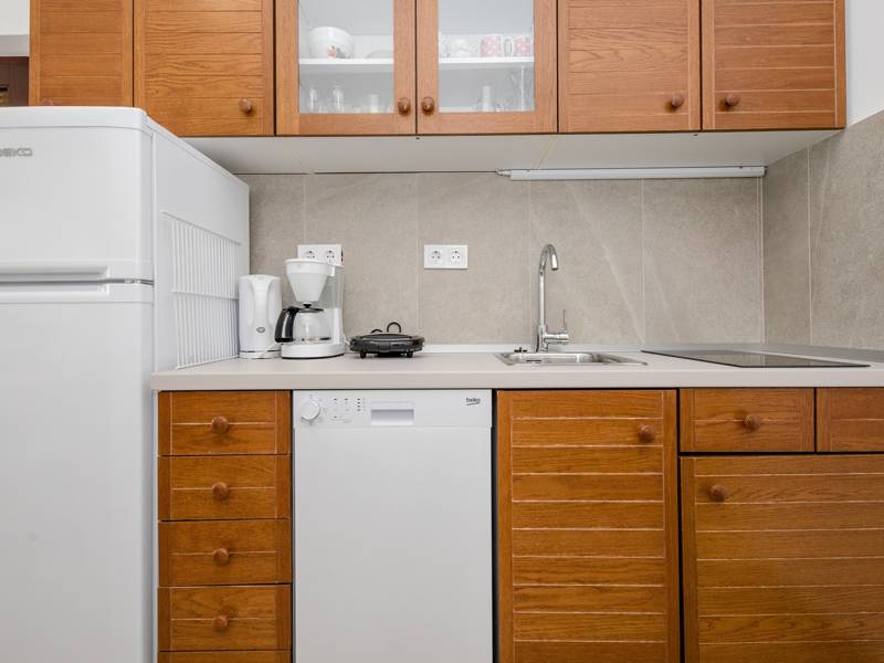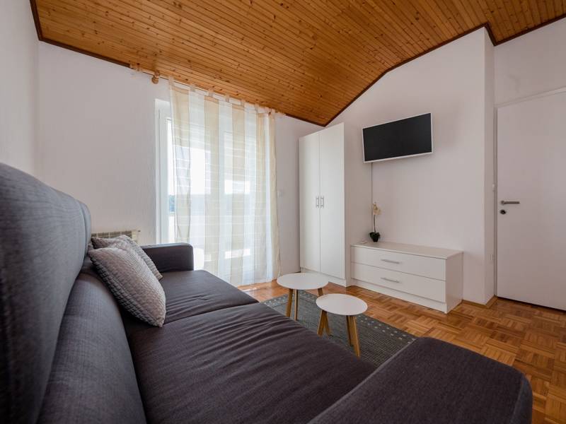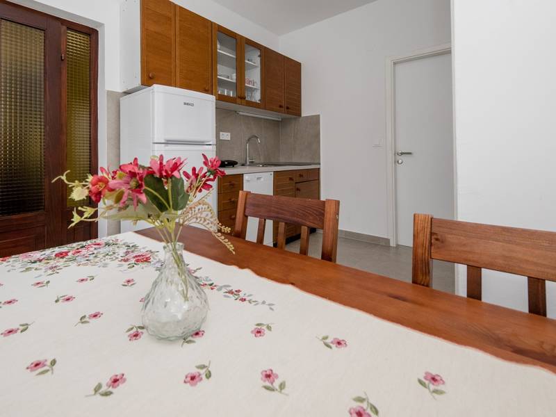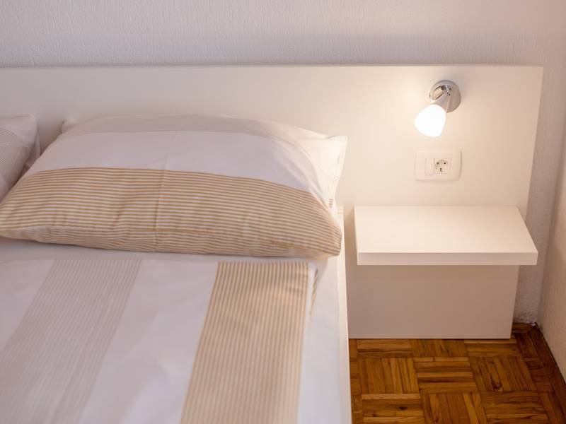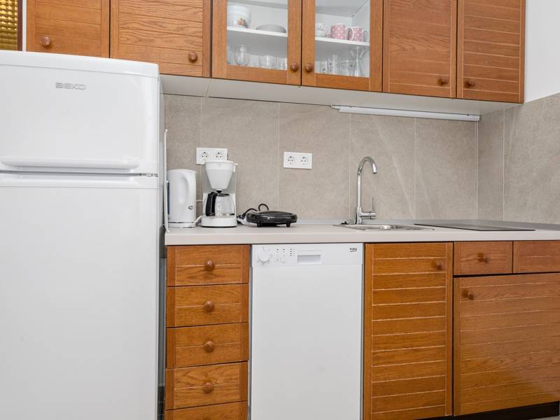 Het comfortabele appartement Vidas A6 ligt aan de kust, ten noorden van de stad Rab op het gelijknamige eiland Palit. Appartement Vidas A6 bevindt zich op de tweede verdieping van het appartementencomplex en is geschikt voor 2 - 4 personen. Het appartement bestaat uit een slaapkamer met een tweepersoonsbed, een badkamer met een douche, een woonkamer met een slaapbank. In het hoofdgedeelte is er een goed uitgeruste keuken met keukengerei, een vaatwasser en alle benodigde kookapparatuur. Vanuit het appartement heb je toegang tot een ruim privébalkon waar je een zithoek kunt vinden met uitzicht op de zee en uitzicht op de kades in de buurt. Dit is de perfecte plek om te genieten van warme zomeravonden met je familie of vrienden. Er is privéparkeergelegenheid beschikbaar op het terrein. Een babybedje is beschikbaar op aanvraag. Ontbijt is op aanvraag beschikbaar bij de faciliteit tegen een toeslag.