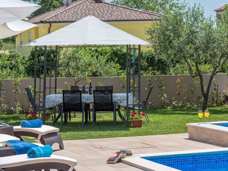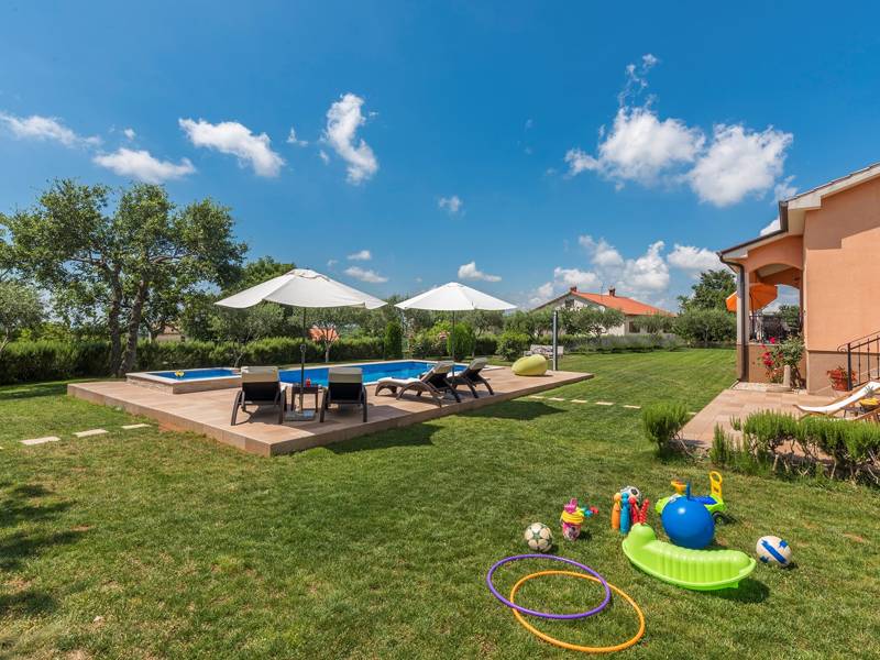 Moderne en mooi ingerichte villa met zwembad en tuin voor maximaal 6 personen. Villa Antonela is een mooi en modern huis met zwembad in het dorp Radetici in Istrië. Dankzij de ideale ligging biedt het u een onvergetelijke en ontspannen vakantie, en is het een ideale keuze voor een rustige vakantie in een idyllische Istrische omgeving. Het privézwembad in een prachtig aangelegde tuin aan de voorkant van het huis biedt u op elk moment verfrissing in het kristalheldere water. De villa bestaat uit 2 slaapkamers met een tweepersoonsbed. 1 slaapkamer met twee eenpersoonsbedden, een ingerichte keuken, een badkamer met douche, een apart toilet en een gezellige woonkamer met TV. Verder heeft het een prachtig terras met uitzicht op het zwembad ( 32 m2 + 4 m2 kinderbad) en een groene tuin met een kinderspeelplaats. Kom ons bezoeken en beleef een onvergetelijke vakantie in Kroatië.