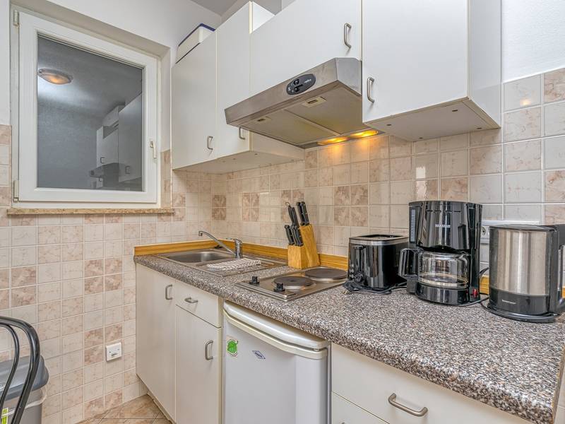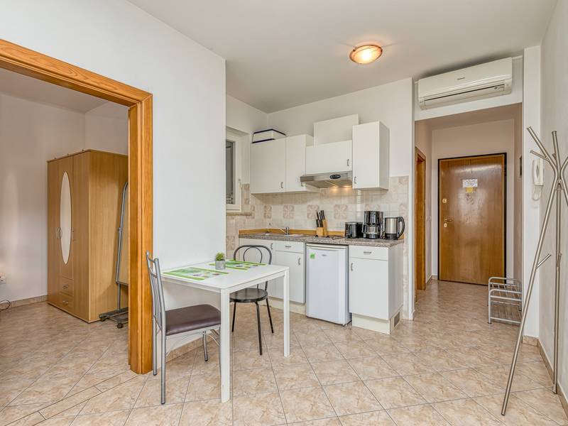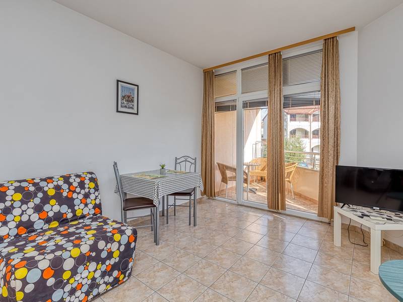 Appartementenhuis Sunrise ligt in de buurt van het strand van Cuvi, en bestaat uit verschillende appartementen die geschikt zijn voor 2 - 3 personen. De appartementen bevinden zich op de begane grond, eerste en tweede verdieping. Alle appartementen hebben een balkon of terras, een slaapkamer, een keuken met basis keukenapparatuur en een badkamer met douche. Studio-appartementen hebben geen aparte slaapkamer. De airconditioning bevindt zich in de woonkamer, waar een bank staat voor een extra persoon. We raden het aan voor gezinnen met kleine kinderen, aangezien extra bedden niet geschikt zijn voor volwassenen. De woonkamer met eetkamer en keuken heeft een uitgang naar een klein balkon/terras met zitje. Er is parkeergelegenheid voor het huis en voorafgaande kennisgeving is niet nodig. Huisdieren zijn toegestaan met voorafgaande kennisgeving en een extra vergoeding.