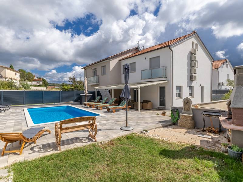 Dit prachtige huis met een zwembad ligt in het rustige en idyllische dorpje Rovinjsko selo, een perfecte plek om te ontspannen en te genieten van privacy. Aangezien het dit jaar nieuw is gebouwd, is alles er modern ingericht en aangepast aan hoge standaarden van comfort. Villa Manda biedt ongelooflijk veel plezier in de zomermaanden dankzij het prachtige privézwembad. Geniet van verfrissende momenten in het water terwijl je ontspant op de ligstoelen en geniet van het spectaculaire uitzicht op het omliggende landschap. Binnen in het huis vind je ruime en elegant ingerichte ruimtes die garant staan voor een aangenaam verblijf. Het bestaat uit vier comfortabele slaapkamers, elk met een eigen badkamer, waardoor gasten volledige privacy hebben. Alle badkamers zijn modern uitgerust en bieden volledig comfort en luxe. Villa Manda is volledig voorzien van airconditioning, wat betekent dat je je op elk moment van de dag of nacht comfortabel zult voelen, ongeacht de buitentemperatuur. Bovendien maakt de nabijheid van de prachtige stad Rovinj deze accommodatie nog aantrekkelijker. Rovinj staat bekend om zijn schoonheid, rijke geschiedenis en prachtige stranden, die allemaal binnen handbereik zijn. Voor gasten die met eigen vervoer komen, biedt het huis een privéparkeerplaats, wat een uitstekend gemak is, vooral tijdens het toeristenseizoen. Dit huis met zwembad in het dorp Rovinj is een ideale plek voor een gezinsvakantie of een vakantie met vrienden. Hier vindt u de perfecte combinatie van moderne stijl, comfort en de nabijheid van alle attracties die dit prachtige deel van Istrië te bieden heeft.