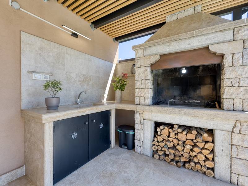 Vakantiehuis met privézwembad, omheinde tuin en overdekt barbecueterras. Het vakantiehuis met twee slaapkamers ligt in een klein dorp op slechts een paar minuten rijden van Labin en Rabac en biedt de ideale omstandigheden voor een ontspannen vakantie met het gezin. De woning is volledig omheind. Naast een moderne inrichting met alle voorzieningen die men zich op vakantie kan wensen, heeft het huis een grote weide die uitnodigt om te ontspannen in de zon. Er is ook een overdekt terras met een barbecue en een privé zwembad (32m2). Op de begane grond bevindt zich de keuken met eethoek, een woonkamer en een badkamer met douche. Op de eerste verdieping zijn twee tweepersoonsslaapkamers en een badkamer met bad. De vijfde persoon slaapt op de extra slaapbank (80 x 200 cm) in de grootste van de twee slaapkamers. Alle kamers zijn voorzien van airconditioning. Wi-Fi is gratis beschikbaar. Er zijn drie fietsen gratis beschikbaar, waaronder één voor kinderen. Je verhuurders wonen in de buurt en helpen je graag als je iets nodig hebt. Je kunt bij hen ook zelfgemaakte wijn, schnaps, honing en heerlijke olijfolie kopen. Huisdieren zijn welkom, met een extra bedrag per hond en per dag - ter plaatse te betalen.