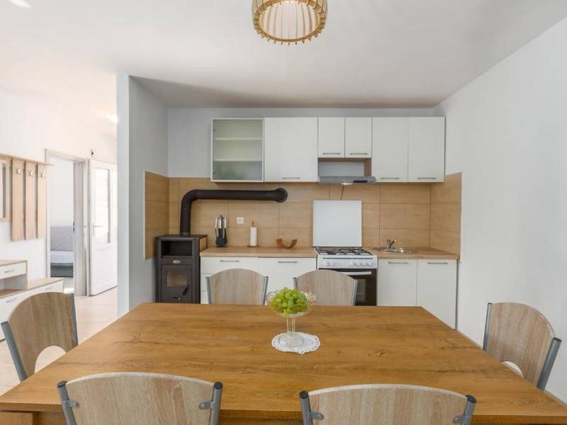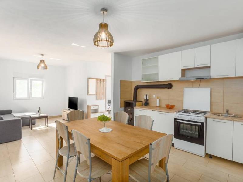 Gelegen in het rustige dorpje Šegotići, in het ongerepte oostelijke deel van Istrië, is dit charmante vakantiehuis met privézwembad een uitstekende keuze voor gasten die op zoek zijn naar privacy, comfort en een authentieke mediterrane sfeer. Het pand bestaat uit drie afzonderlijke appartementen, waardoor het ideaal is voor gezinnen of groepen vrienden die samen reizen en zowel gedeelde momenten als persoonlijke ruimte waarderen. Met een totale capaciteit van maximaal 8 gasten biedt het huis een harmonieuze balans tussen functionaliteit en ontspanning. Het vakantiehuis ligt op een volledig omheind perceel en garandeert volledige privacy en veiligheid, vooral voor gezinnen met kinderen. Een ruime privétuin omringt het huis en biedt voldoende ruimte voor buitenactiviteiten, zonnebaden en ontspanning. Het privézwembad nodigt gasten uit om af te koelen tijdens warme Istrische dagen, terwijl de buitenruimte een aangename omgeving creëert om te socializen en te genieten van lange zomeravonden. Dankzij de rustige locatie biedt het huis een ware ontsnapping uit het dagelijks leven, maar het blijft binnen handbereik van prachtige stranden, kristalheldere zee en pittoreske kustplaatsjes in het oosten van Istrië. Dit vakantiehuis in Šegotići is een perfecte uitvalsbasis om de natuurlijke schoonheid van de regio te ontdekken en tegelijkertijd te genieten van een comfortabel en privé verblijf in Istrië.