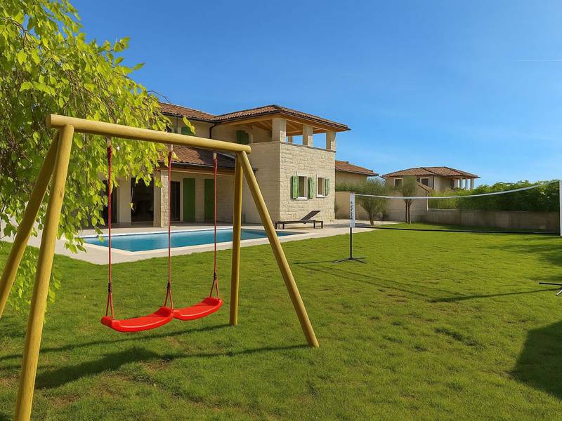 Gelegen in het rustige dorpje Otočani in de buurt van Žminj, biedt de nieuwe Villa Lunistra 220 m2 hedendaags comfort en volledige privacy voor een ontspannen vakantie in Istrië. Het is ontworpen voor maximaal acht gasten en beschikt over een ruime open woonkamer met een volledig uitgeruste keuken en eethoek die uitkomt op een overdekt terras en een grote omheinde tuin van 1.060 m2. In het hart van het pand ligt een zwembad van 34 m2 omringd door een zonneterras met comfortabele ligstoelen, perfect voor lange zomerdagen. Dankzij de uitstekende locatie kunnen gasten gemakkelijk de Istrische kust verkennen - het schilderachtige Rovinj ligt op slechts 20 km afstand, Pula op 30 km en Poreč op 40 km - terwijl ze toch kunnen genieten van de rust en privacy van deze moderne villa. Als u een jongere groep gasten bent, neem dan van tevoren contact op met de eigenaar, aangezien sommige eigenaren geen jongere groepen accepteren.