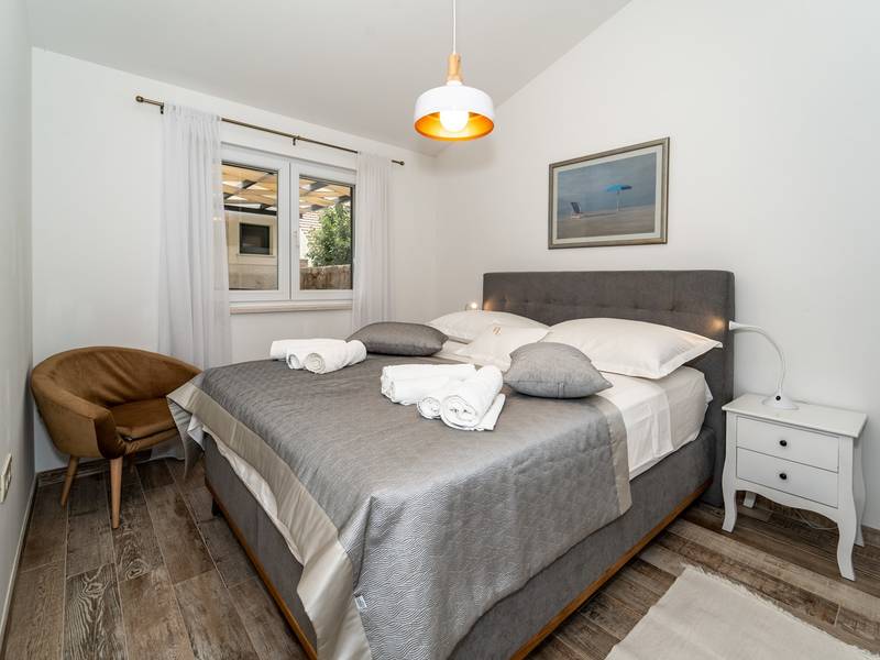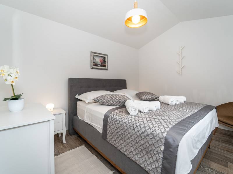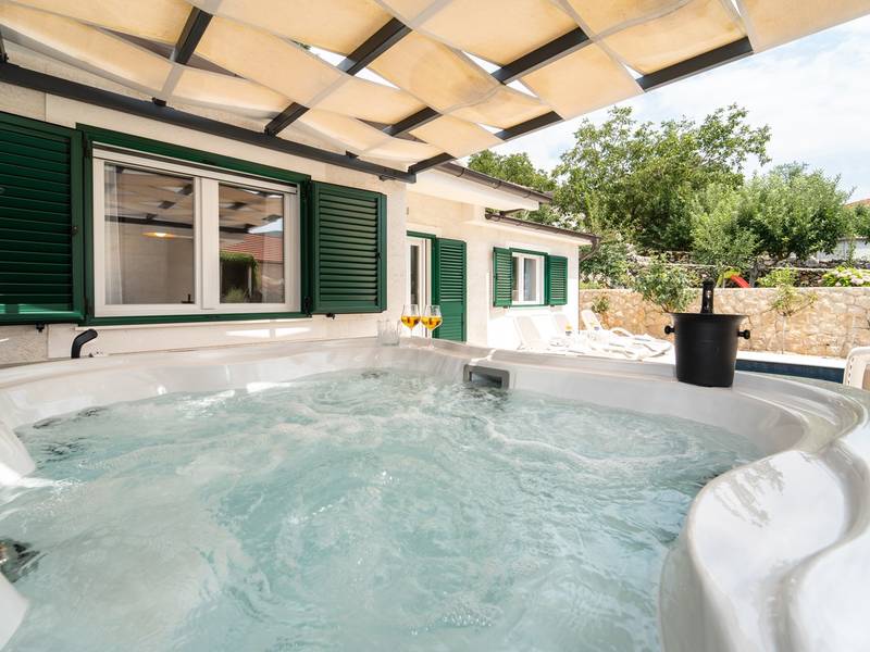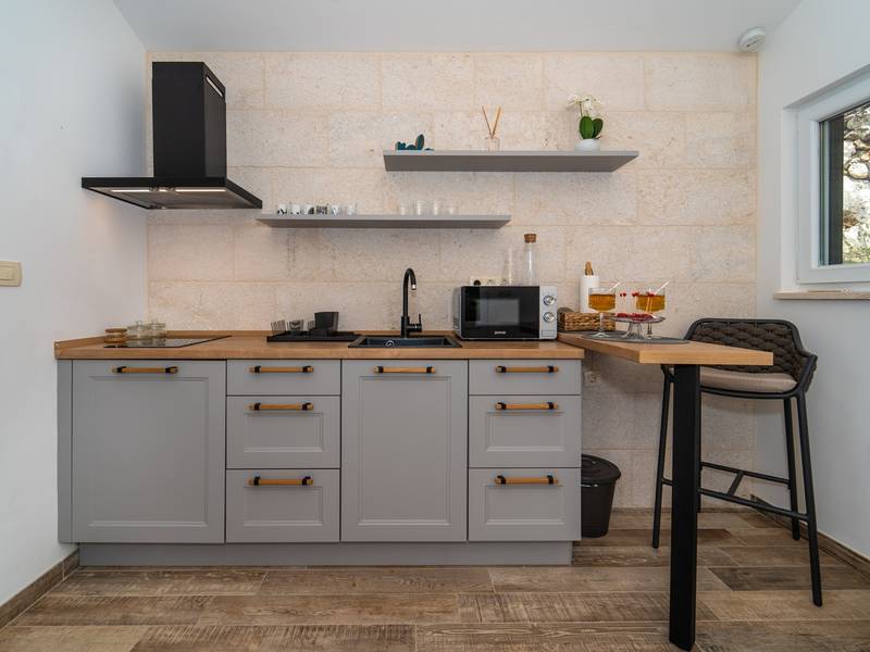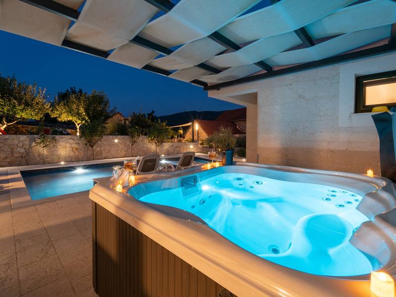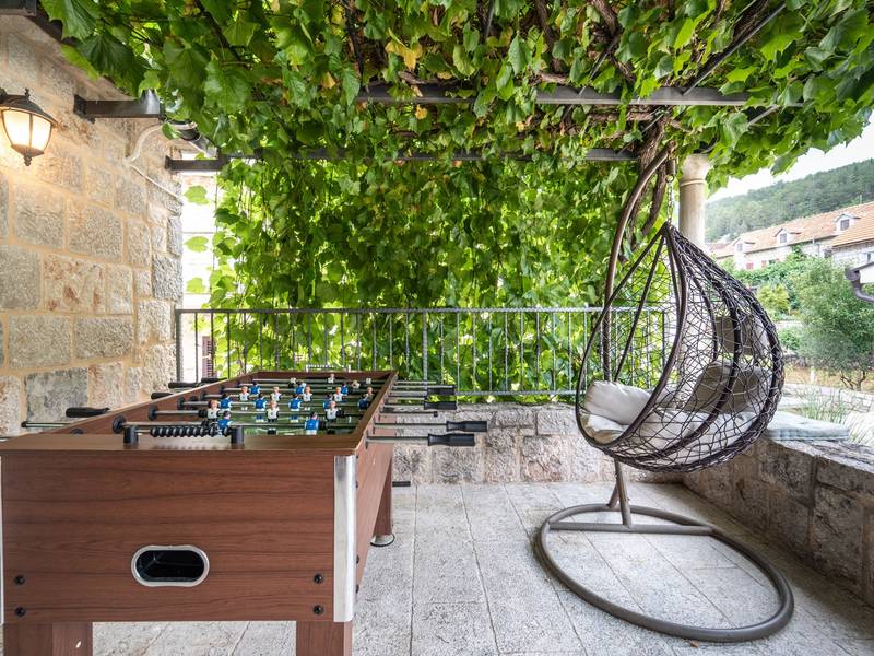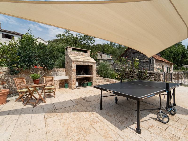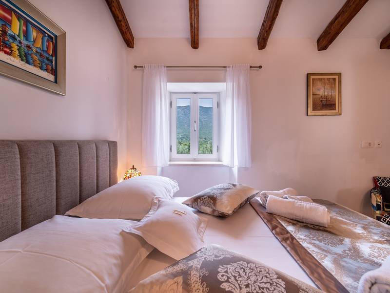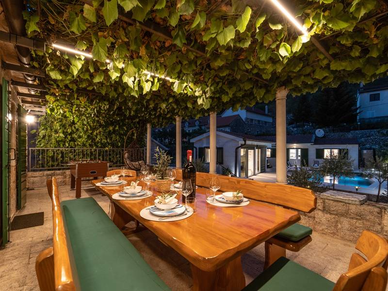 Genesteld in het charmante dorpje Slivno, Imotski, biedt Villa Aurora een perfect uitje in het hart van Dalmatië. Deze prachtig gerenoveerde traditionele stenen villa, gebouwd in 1911, beschikt over een verwarmd privézwembad van 28 m² met hydromassage, een Turkse sauna en een hot tub voor ultieme ontspanning. Stijlvol ontworpen en volledig uitgerust voor de moderne gast, verwelkomt deze villa ook uw viervoetige familieleden! Met 5 slaapkamers in twee met elkaar verbonden wooneenheden is het ideaal voor gezinnen en groepen. Op slechts 13 km van Imotski, 20 km van Makarska, 44 km van Omiš en 65 km van Split, de hoofdstad van de regio - Twee prachtige huizen die exclusief voor u worden aangeboden: - Hoofdwoning: - Op de begane grond met airconditioning vindt u een volledig uitgeruste moderne keuken, een eethoek en een gezellige woonkamer met een tv en een open haard, naast een familiebadkamer met een douche en een wasmachine en een Turkse sauna voor ultieme ontspanning. - Op deze verdieping bevindt zich ook een charmante kamer in ˝tavern˝-stijl, traditioneel ingericht en gevuld met eersteklas lokale wijnen om van te genieten. - De eerste verdieping beschikt over slaapkamer nr. 1 (11 m²) met een tweepersoonsbed, slaapkamer nr. 2 (8 m²) met een tweepersoonsbed en een eenpersoonsstapelbed (perfect voor kinderen), slaapkamer nr. 3 (6 m²) met een eenpersoonsbed. Vanuit het stenen huis heb je een heerlijk natuurlijk schaduwrijk buitenterras met een houten eettafel, een tafelvoetbalspel en een schommelende eierstoel met uitzicht op het zwembad - perfect om te genieten van die warme zomeravonden. - Pool Cottage: - Dit nieuwe gedeelte van het huis biedt een woon-/eetgedeelte met airconditioning en een volledig uitgeruste keuken met directe toegang tot het zwembad. Er zijn slaapkamers nr. 4 en nr. 5, beide met een tweepersoonsbed, een familiebadkamer met een douche en een wasmachine - Een overdekt gedeelte met een hot-tub (whirlpool) - Er is ook een volledig uitgeruste zomerkeuken met airconditioning en een eettafel voor 10 personen met glazen schuifdeuren naar het zwembad, en er is een apart toilet. Een ruime, met gras begroeide tuin verbindt de woningen en biedt een geweldige plek voor een kopje koffie in de namiddag of om te spelen met je huisdier. Geniet van vers fruit uit de tuin of steek de traditionele stenen grill aan voor een heerlijke barbecue, en vermaak je met een tafeltennistafel in de buitenlucht. De buitenterrassen zijn ideaal voor gezelligheid en entertainment. Aangrenzend wacht het prachtige buitenzwembad, compleet met een jacuzzi voor ultieme ontspanning. Ontspanning en amusement Villa Aurora is ook een spa oase, met: - Een Turkse sauna - Een verwarmd buitenzwembad - Een verjongende jacuzzi