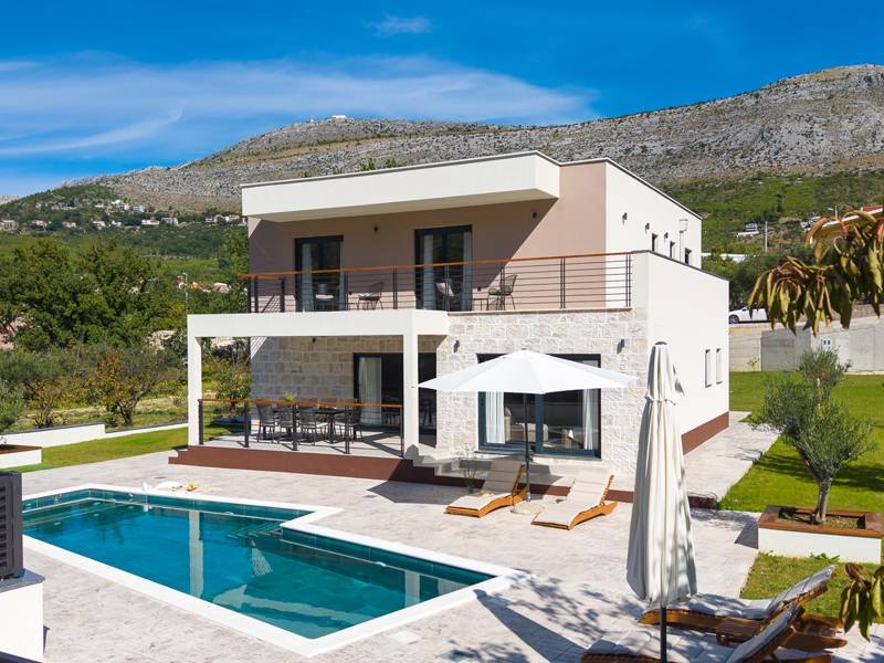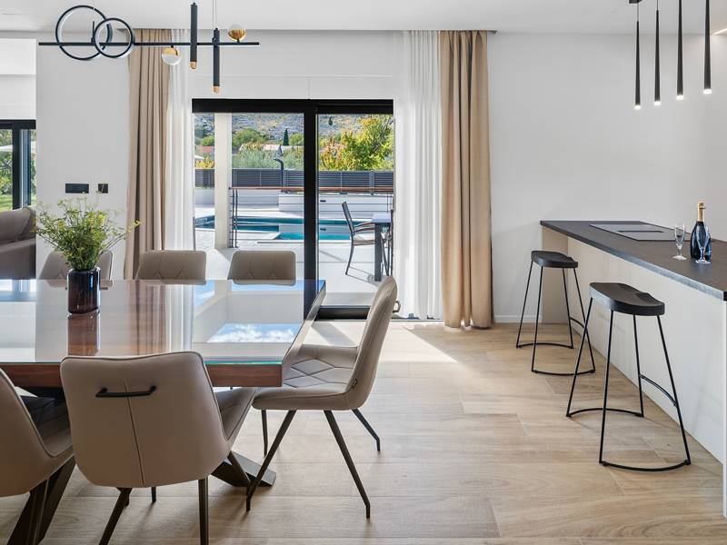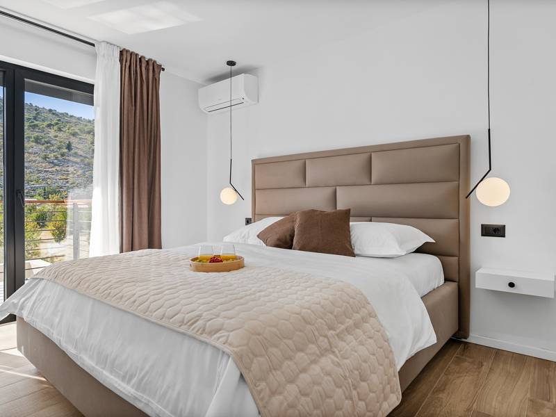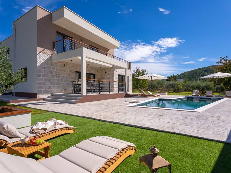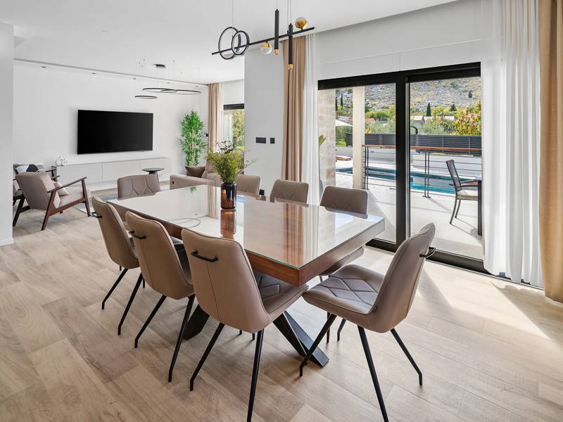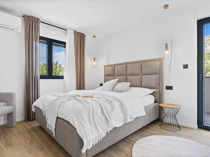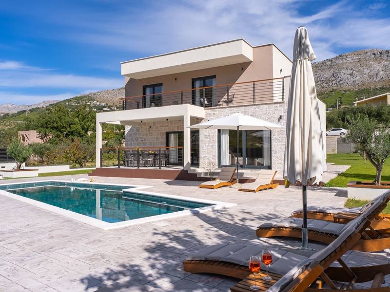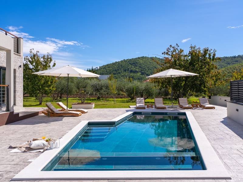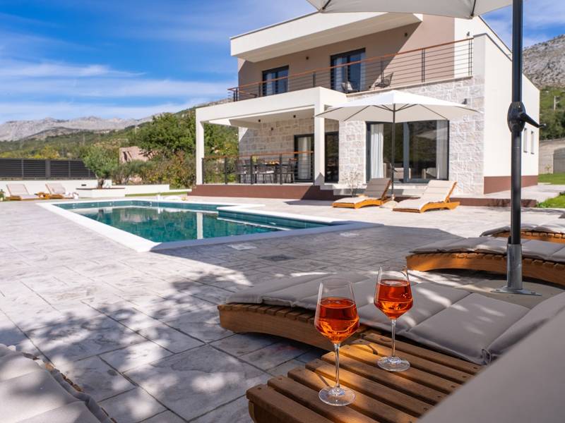 Welkom bij Villa Agrosa, een nieuw gebouwd, prachtig ontworpen toevluchtsoord gelegen in het rustige dorpje Srinjine, op slechts 17 km van Split, 9 km van de dichtstbijzijnde stranden, en een gemakkelijke rit naar Omiš, Trogir, en de prachtige Dalmatische kust. Omgeven door de natuur en toch dicht bij de lokale voorzieningen (minimarkt 500 m), is de villa perfect voor gezinnen en groepen die op zoek zijn naar comfort, privacy en plezier. Een auto wordt aanbevolen voor de beste ervaring - What You'll Love Volledig omheind 1.500 m2 eigen terrein, 250 m2 modern, stijlvol interieur Slaapplaatsen 9 volwassenen + 1 gast Privé 10 m x 3 m zwembad (30 m2) met hydromassage en elektrolyse systeem Finse sauna, bad en wellness hoek Entertainment kamer: Tafeltennis, darts, schaken, gewichten, yogamat, PlayStation 5 Buiten dineren, houtskool BBQ, zithoek Kinderframe met een schommel en een glijbaan - Buitenruimte - Uw privé paradijs Zwembad (10 m x 3 m) met hydromassage zitplaatsen Elektrolyse filtratie (zacht voor huid en ogen) 10 ligstoelen, parasols en een buitendouche Overdekte eethoek voor 10 personen met een barbecue Gezellige loungehoek - perfect voor zonsondergangen Kinderspeelzone met schommel en glijbaan tot 5 auto's privéparkeerplaats, ingangsbewaking - Overdekte binnenruimtes met gratis WiFi Licht, modern, voorzien van airconditioning en ontworpen voor comfort.Ruime en volledig van airconditioning voorziene open woonkamer met directe toegang tot het zwembad Sofa (om te bouwen tot een slaapbank voor 1), een flatscreen-tv en een leeshoek Keuken en eetkamer Van airconditioning voorziene en volledig uitgeruste moderne keuken met eiland, een Nespresso-apparaat, magnetron, vaatwasser, broodrooster, waterkoker, enz, eettafel binnen met schuifdeuren naar het terras - Entertainment en Wellness Zone Tafeltennis, darts, schaken, gewichten, een yogamat, een bank, een tv en een PlayStation 5 - Kamer met Finse sauna, airconditioning en een bad - Badkamer (5 m2) met douche - Wasruimte: wasmachine, droger, strijkijzer Slaapkamers - Alle op de eerste verdieping - Slaapkamer 1, 13 m2, Zuid-West King bed (180 × 200 cm), TV, AC, En-suite badkamer (5 m2) met douche, Prive balkon, uitzicht op het zwembad en het platteland - Slaapkamer 2, 20 m2, Zuid-Oost King bed (180 × 200 cm, kan apart), Single bed (90 × 200 cm), TV, AC, En-suite badkamer (5 m2) met douche, Balkon gedeeld met Slaapkamer 1 - Slaapkamer 3, 13 m2, Noord-West Queensbed (160 × 200 cm), TV, AC, Balkon met uitzicht op de toegangsweg en de buurt - Slaapkamer 4, 13 m2, Noord-Oost King bed (180 × 200 cm), TV, AC, Uitzicht op de buurt en de natuur.- Er is een familiebadkamer 5 m2, met een douche, wastafel en toilet Extra services (op aanvraag, tegen betaling) In-villa massages Levering van eten en boodschappen Ervaringen op maat en persoonlijke services Of je nu je dagen bij het zwembad doorbrengt, de kustlijn verkent, of geniet van rustige avonden onder de sterren, Villa Agrosa is ontworpen om je Kroatische vakantie onvergetelijk te maken. We kijken ernaar uit om je te ontvangen! Voel je vrij om ons op elk moment te berichten met vragen - je perfecte verblijf begint hier.