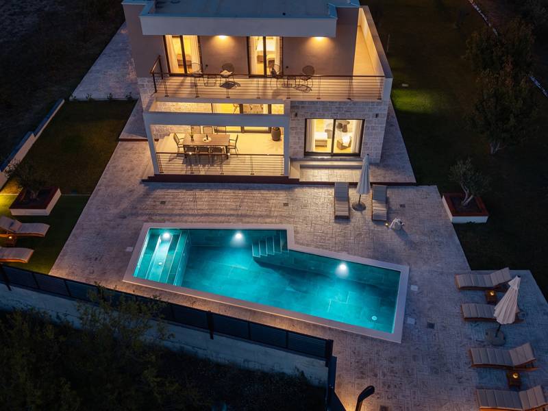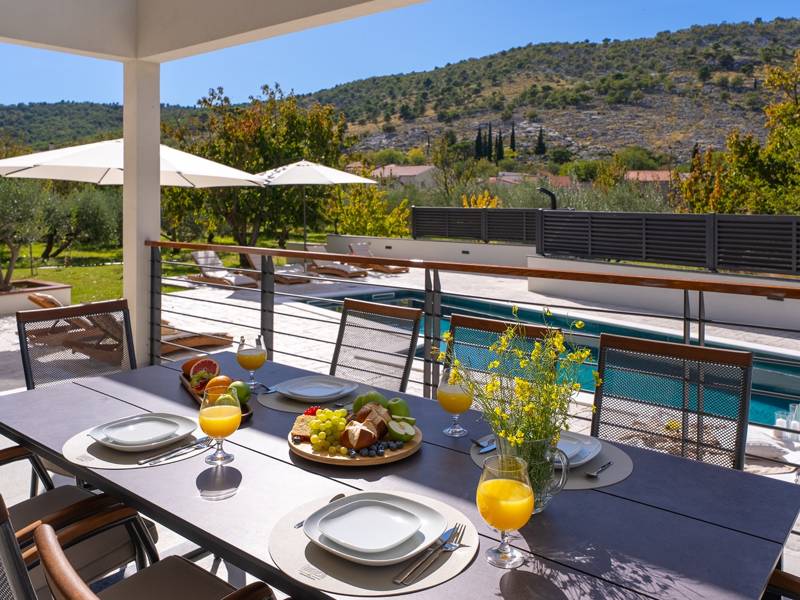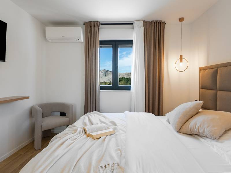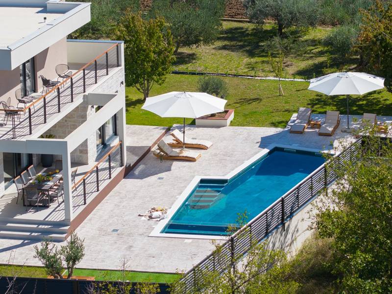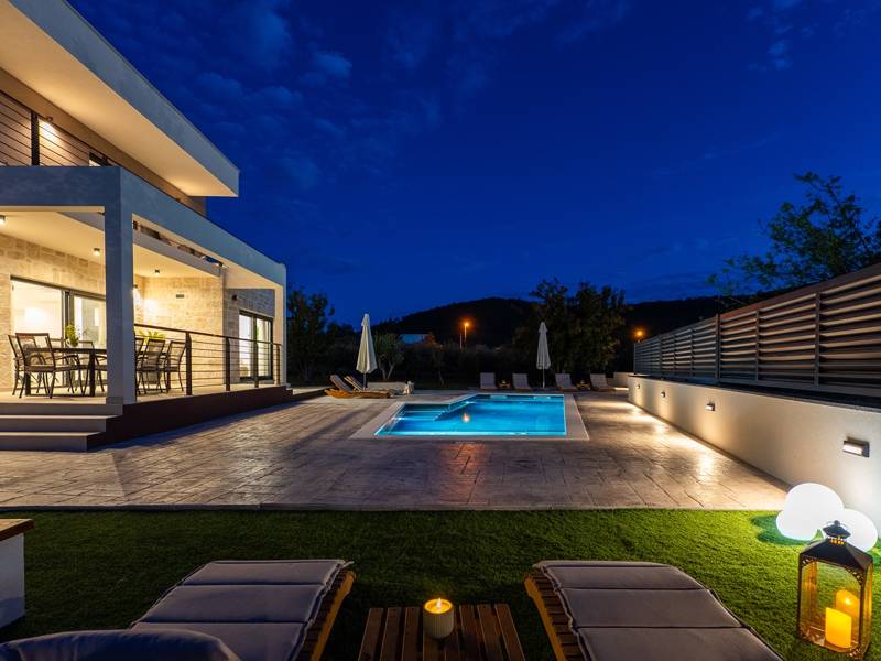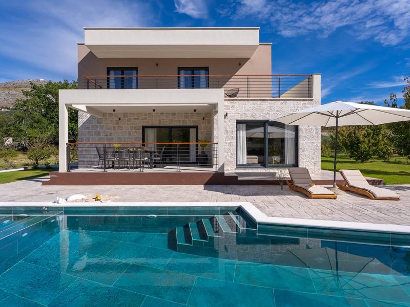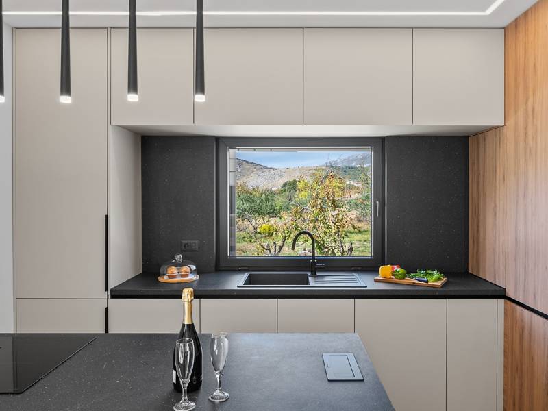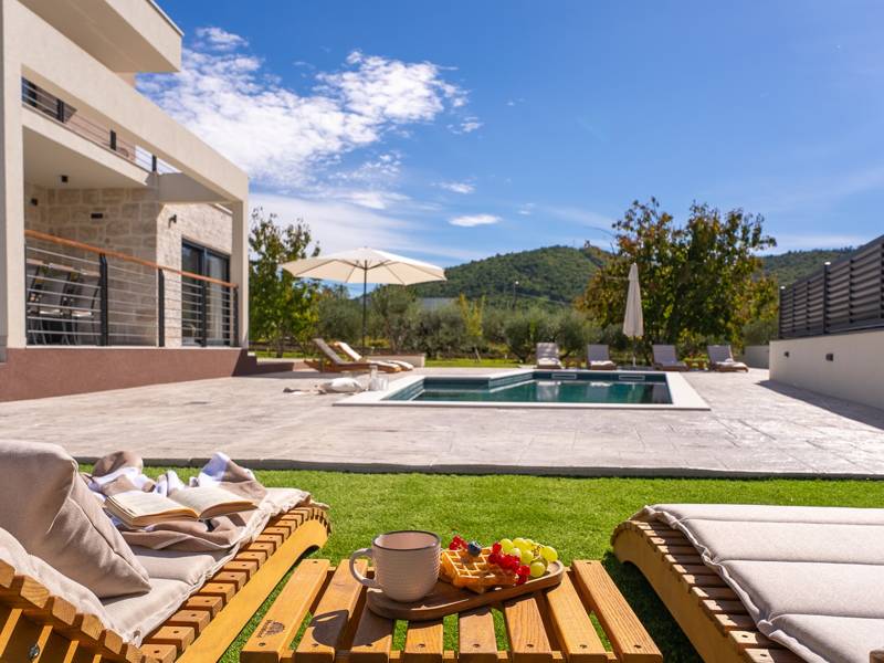 Welkom bij Villa Agrosa, een nieuw gebouwd, prachtig ontworpen toevluchtsoord gelegen in het rustige dorpje Srinjine, op slechts 17 km van Split, 9 km van de dichtstbijzijnde stranden, en een gemakkelijke rit naar Omiš, Trogir, en de prachtige Dalmatische kust. Omgeven door de natuur en toch dicht bij de lokale voorzieningen (minimarkt 500 m), is de villa perfect voor gezinnen en groepen die op zoek zijn naar comfort, privacy en plezier. Een auto wordt aanbevolen voor de beste ervaring - What You'll Love Volledig omheind 1.500 m2 eigen terrein, 250 m2 modern, stijlvol interieur Slaapplaatsen 9 volwassenen + 1 gast Privé 10 m x 3 m zwembad (30 m2) met hydromassage en elektrolyse systeem Finse sauna, bad en wellness hoek Entertainment kamer: Tafeltennis, darts, schaken, gewichten, yogamat, PlayStation 5 Buiten dineren, houtskool BBQ, zithoek Kinderframe met een schommel en een glijbaan - Buitenruimte - Uw privé paradijs Zwembad (10 m x 3 m) met hydromassage zitplaatsen Elektrolyse filtratie (zacht voor huid en ogen) 10 ligstoelen, parasols en een buitendouche Overdekte eethoek voor 10 personen met een barbecue Gezellige loungehoek - perfect voor zonsondergangen Kinderspeelzone met schommel en glijbaan tot 5 auto's privéparkeerplaats, ingangsbewaking - Overdekte binnenruimtes met gratis WiFi Licht, modern, voorzien van airconditioning en ontworpen voor comfort.Ruime en volledig van airconditioning voorziene open woonkamer met directe toegang tot het zwembad Sofa (om te bouwen tot een slaapbank voor 1), een flatscreen-tv en een leeshoek Keuken en eetkamer Van airconditioning voorziene en volledig uitgeruste moderne keuken met eiland, een Nespresso-apparaat, magnetron, vaatwasser, broodrooster, waterkoker, enz, eettafel binnen met schuifdeuren naar het terras - Entertainment en Wellness Zone Tafeltennis, darts, schaken, gewichten, een yogamat, een bank, een tv en een PlayStation 5 - Kamer met Finse sauna, airconditioning en een bad - Badkamer (5 m2) met douche - Wasruimte: wasmachine, droger, strijkijzer Slaapkamers - Alle op de eerste verdieping - Slaapkamer 1, 13 m2, Zuid-West King bed (180 × 200 cm), TV, AC, En-suite badkamer (5 m2) met douche, Prive balkon, uitzicht op het zwembad en het platteland - Slaapkamer 2, 20 m2, Zuid-Oost King bed (180 × 200 cm, kan apart), Single bed (90 × 200 cm), TV, AC, En-suite badkamer (5 m2) met douche, Balkon gedeeld met Slaapkamer 1 - Slaapkamer 3, 13 m2, Noord-West Queensbed (160 × 200 cm), TV, AC, Balkon met uitzicht op de toegangsweg en de buurt - Slaapkamer 4, 13 m2, Noord-Oost King bed (180 × 200 cm), TV, AC, Uitzicht op de buurt en de natuur.- Er is een familiebadkamer 5 m2, met een douche, wastafel en toilet Extra services (op aanvraag, tegen betaling) In-villa massages Levering van eten en boodschappen Ervaringen op maat en persoonlijke services Of je nu je dagen bij het zwembad doorbrengt, de kustlijn verkent, of geniet van rustige avonden onder de sterren, Villa Agrosa is ontworpen om je Kroatische vakantie onvergetelijk te maken. We kijken ernaar uit om je te ontvangen! Voel je vrij om ons op elk moment te berichten met vragen - je perfecte verblijf begint hier.