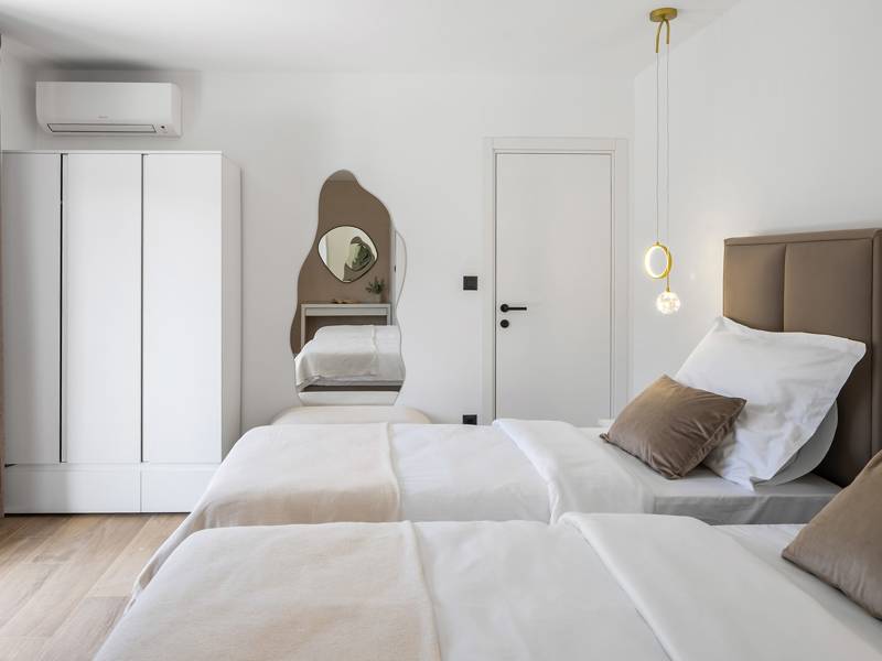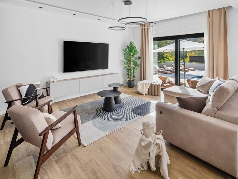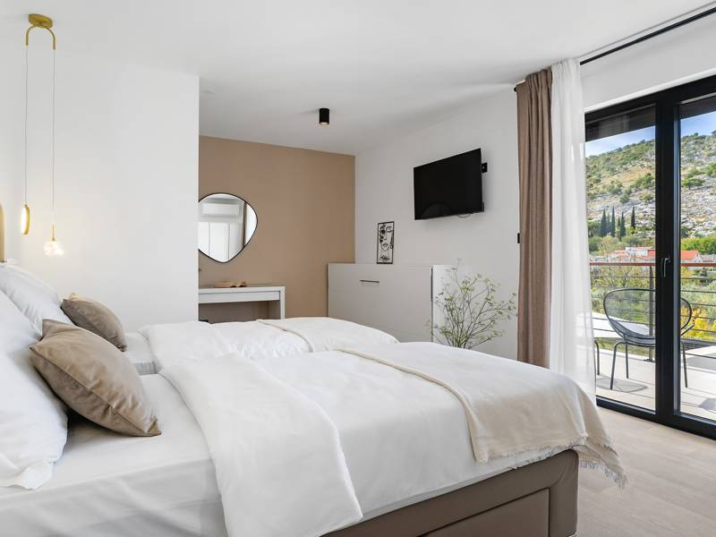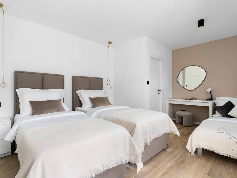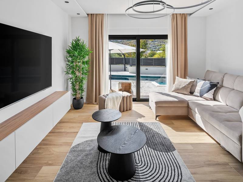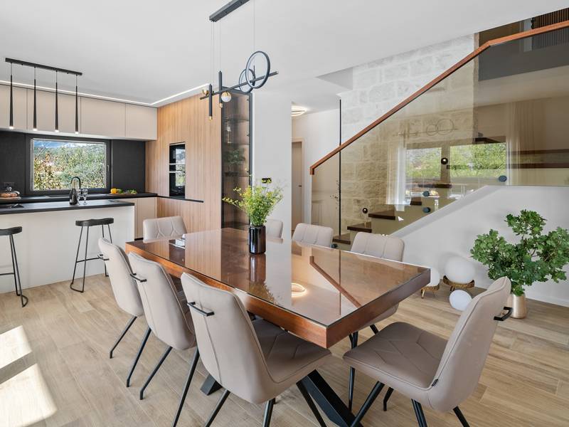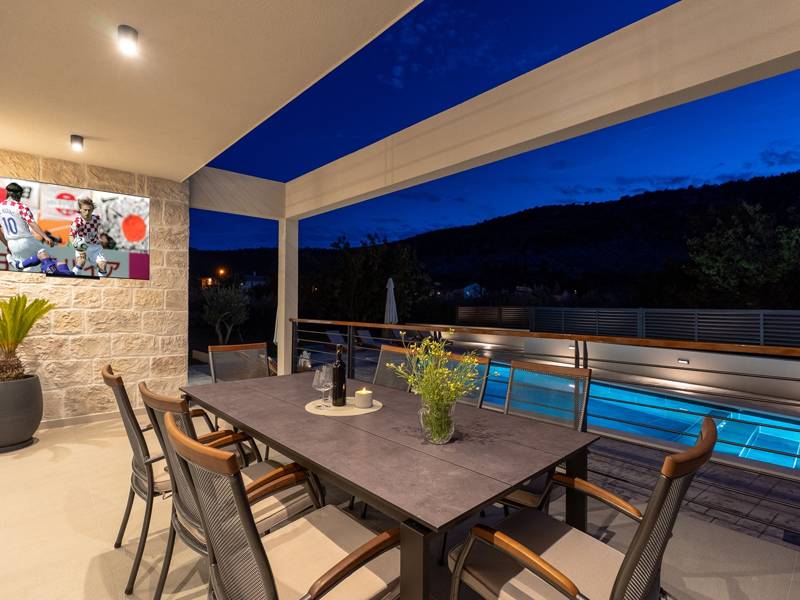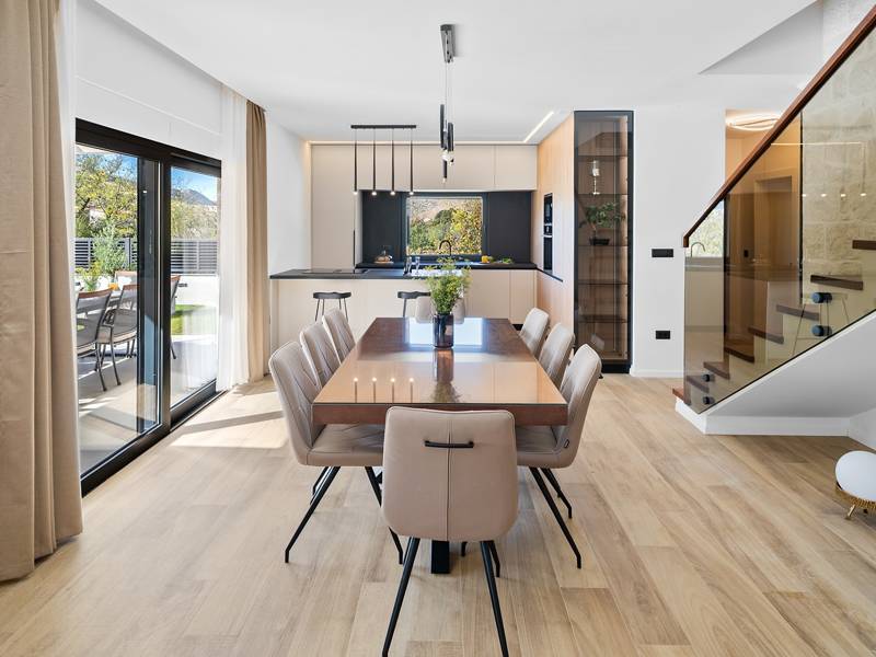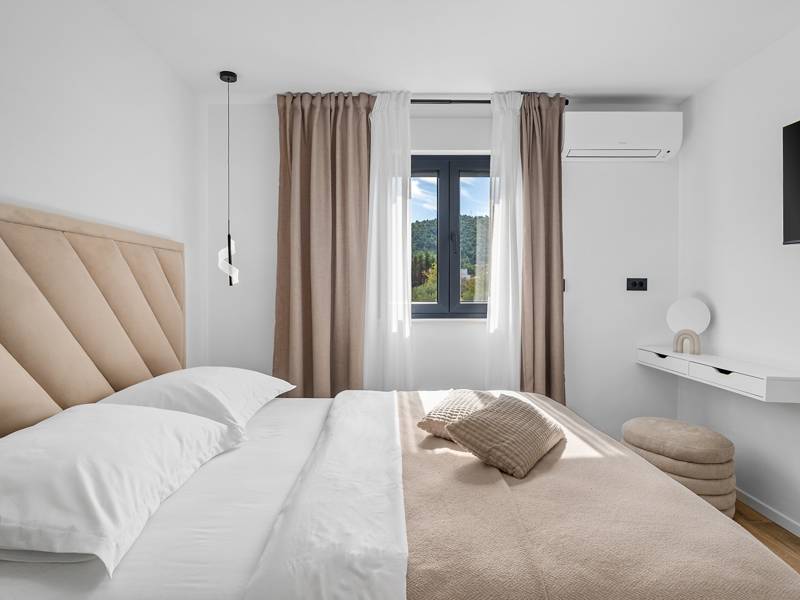 Welkom bij Villa Agrosa, een nieuw gebouwd, prachtig ontworpen toevluchtsoord gelegen in het rustige dorpje Srinjine, op slechts 17 km van Split, 9 km van de dichtstbijzijnde stranden, en een gemakkelijke rit naar Omiš, Trogir, en de prachtige Dalmatische kust. Omgeven door de natuur en toch dicht bij de lokale voorzieningen (minimarkt 500 m), is de villa perfect voor gezinnen en groepen die op zoek zijn naar comfort, privacy en plezier. Een auto wordt aanbevolen voor de beste ervaring - What You'll Love Volledig omheind 1.500 m2 eigen terrein, 250 m2 modern, stijlvol interieur Slaapplaatsen 9 volwassenen + 1 gast Privé 10 m x 3 m zwembad (30 m2) met hydromassage en elektrolyse systeem Finse sauna, bad en wellness hoek Entertainment kamer: Tafeltennis, darts, schaken, gewichten, yogamat, PlayStation 5 Buiten dineren, houtskool BBQ, zithoek Kinderframe met een schommel en een glijbaan - Buitenruimte - Uw privé paradijs Zwembad (10 m x 3 m) met hydromassage zitplaatsen Elektrolyse filtratie (zacht voor huid en ogen) 10 ligstoelen, parasols en een buitendouche Overdekte eethoek voor 10 personen met een barbecue Gezellige loungehoek - perfect voor zonsondergangen Kinderspeelzone met schommel en glijbaan tot 5 auto's privéparkeerplaats, ingangsbewaking - Overdekte binnenruimtes met gratis WiFi Licht, modern, voorzien van airconditioning en ontworpen voor comfort.Ruime en volledig van airconditioning voorziene open woonkamer met directe toegang tot het zwembad Sofa (om te bouwen tot een slaapbank voor 1), een flatscreen-tv en een leeshoek Keuken en eetkamer Van airconditioning voorziene en volledig uitgeruste moderne keuken met eiland, een Nespresso-apparaat, magnetron, vaatwasser, broodrooster, waterkoker, enz, eettafel binnen met schuifdeuren naar het terras - Entertainment en Wellness Zone Tafeltennis, darts, schaken, gewichten, een yogamat, een bank, een tv en een PlayStation 5 - Kamer met Finse sauna, airconditioning en een bad - Badkamer (5 m2) met douche - Wasruimte: wasmachine, droger, strijkijzer Slaapkamers - Alle op de eerste verdieping - Slaapkamer 1, 13 m2, Zuid-West King bed (180 × 200 cm), TV, AC, En-suite badkamer (5 m2) met douche, Prive balkon, uitzicht op het zwembad en het platteland - Slaapkamer 2, 20 m2, Zuid-Oost King bed (180 × 200 cm, kan apart), Single bed (90 × 200 cm), TV, AC, En-suite badkamer (5 m2) met douche, Balkon gedeeld met Slaapkamer 1 - Slaapkamer 3, 13 m2, Noord-West Queensbed (160 × 200 cm), TV, AC, Balkon met uitzicht op de toegangsweg en de buurt - Slaapkamer 4, 13 m2, Noord-Oost King bed (180 × 200 cm), TV, AC, Uitzicht op de buurt en de natuur.- Er is een familiebadkamer 5 m2, met een douche, wastafel en toilet Extra services (op aanvraag, tegen betaling) In-villa massages Levering van eten en boodschappen Ervaringen op maat en persoonlijke services Of je nu je dagen bij het zwembad doorbrengt, de kustlijn verkent, of geniet van rustige avonden onder de sterren, Villa Agrosa is ontworpen om je Kroatische vakantie onvergetelijk te maken. We kijken ernaar uit om je te ontvangen! Voel je vrij om ons op elk moment te berichten met vragen - je perfecte verblijf begint hier.