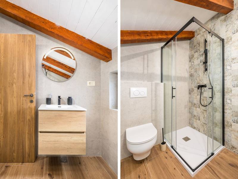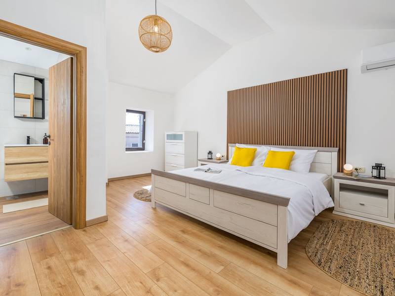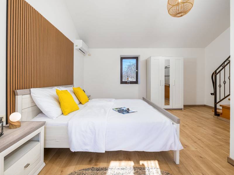 Villa Stock 66 is een prachtig gerenoveerd vakantiehuis, perfect voor gasten die op zoek zijn naar rust, privacy en een ontspannen ontsnapping midden in de natuur. Genesteld in het charmante dorpje Štokovci, biedt deze villa een serene omgeving en toch binnen handbereik van lokale voorzieningen. Het pand beschikt over een ruime omheinde tuin van 400 m2, ideaal voor gezinnen en het buitenleven. In het hart ligt een privézwembad van 32 m2, omringd door ligstoelen en parasols - perfect om te genieten van de mediterrane zon. Gasten kunnen ook genieten van een gezellige open haard, twee fietsen om de omgeving te verkennen en privéparkeergelegenheid op het terrein. Ondanks de rustige locatie liggen supermarkten, restaurants en bars op slechts een klein eindje rijden (ongeveer 6 km), wat de perfecte balans biedt tussen afzondering en gemak. De villa biedt comfortabel plaats aan maximaal 6 gasten, verdeeld over twee verdiepingen. De begane grond biedt een volledig uitgeruste keuken, een lichte en gezellige woonkamer en een eetruimte die ideaal is voor gezamenlijke maaltijden. Boven vind je drie slaapkamers met tweepersoonsbedden. Eén slaapkamer heeft een eigen badkamer, terwijl de andere twee een andere moderne badkamer delen. Of je nu tot rust wilt komen bij het zwembad, het omliggende platteland wilt verkennen of wilt genieten van quality time met familie en vrienden, Villa Stock 66 biedt de perfecte setting voor een onvergetelijke vakantie in Istrië.