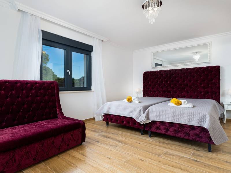 Trakteer jezelf op een onvergetelijke vakantie in de prachtige Villa Laura in Sveti Ivan, in de buurt van Malinska, omgeven door groen voor volledige ontspanning. De villa is geschikt voor maximaal 8 + 2 personen, waardoor het de perfecte keuze is voor een grotere familie of een groep vrienden. Deze volledig van airconditioning voorziene villa strekt zich uit over twee verdiepingen en biedt alles wat je nodig hebt in een comfortabel en praktisch ontwerp. Er zijn vier prachtig ingerichte slaapkamers met tweepersoonsbedden tot je beschikking. Elke slaapkamer heeft een eigen badkamer met een inloopdouche. Tot je beschikking staat een volledig uitgeruste keuken met een ruime eettafel, evenals een modern ingerichte woonkamer met directe toegang tot de tuin, voor gezellige avonden in het gezelschap van geliefden. Het eerste wat je zal opvallen in de ruime tuin is zeker het groen dat je omringt, evenals het prachtige zwembad met bijbehorende ligstoelen die je zullen verleiden om de hele dag te ontspannen. Er is ook een grillgedeelte met een eettafel buiten, voor avonden vol plezier en lekker eten.