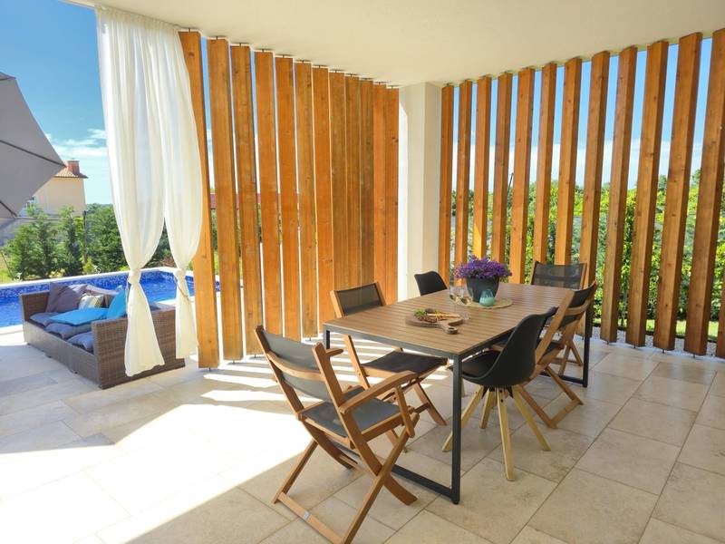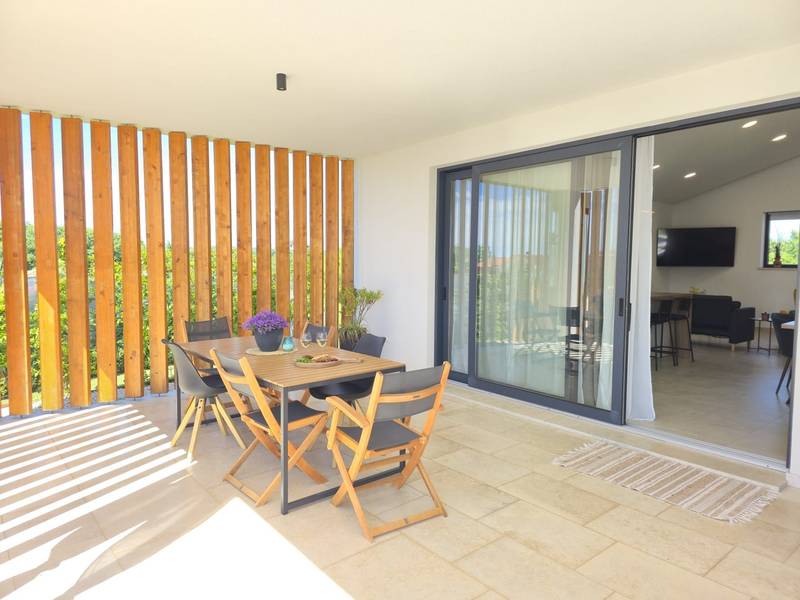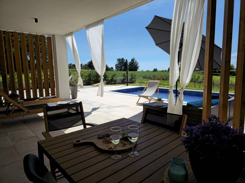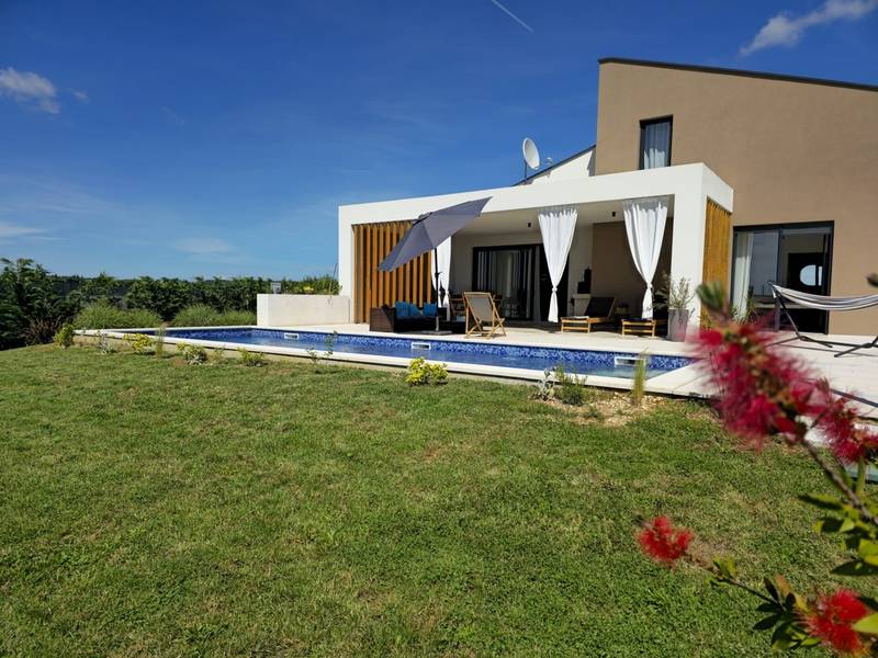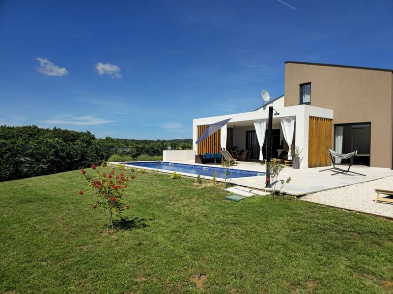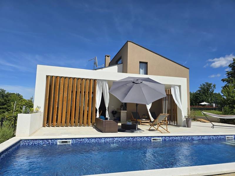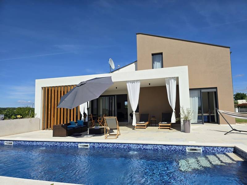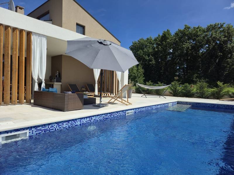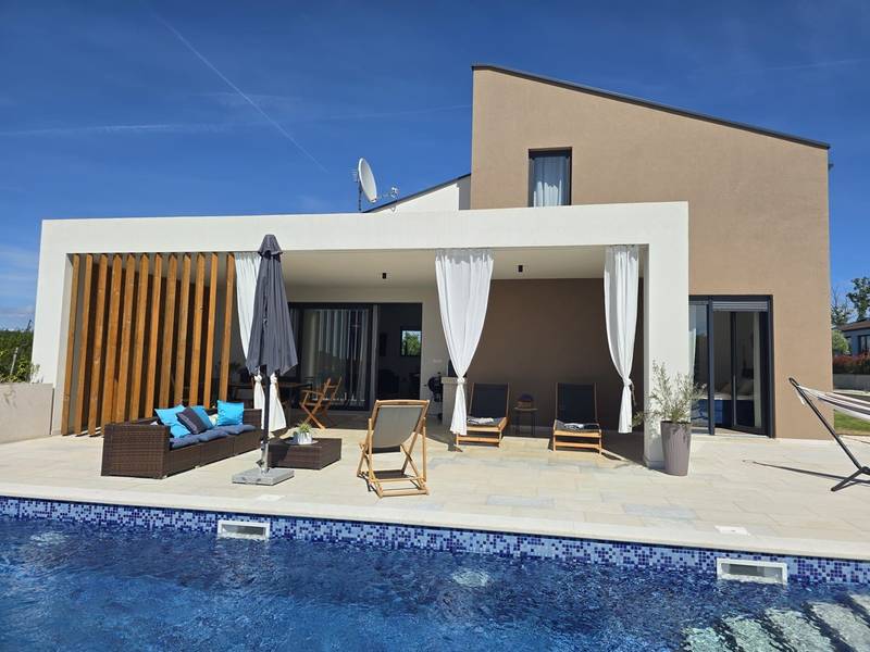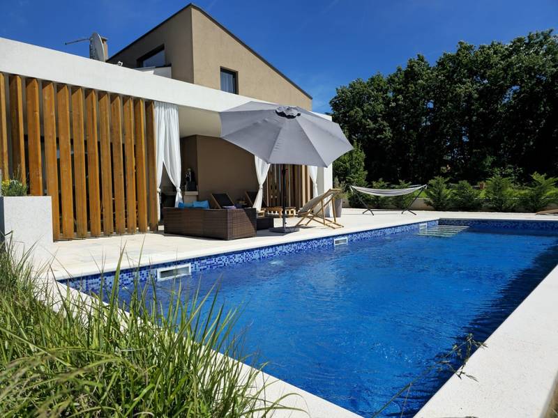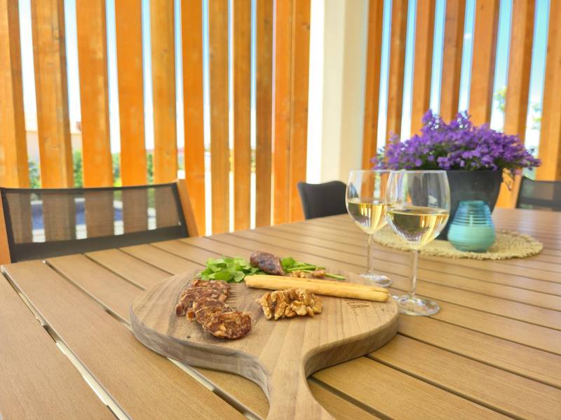 Villa Arija is een modern vakantiehuis ontworpen voor gasten die comfort, privacy en een hoge standaard van accommodatie op prijs stellen. De villa ligt op een ruim perceel van 987 m2 en biedt 207 m2 doordachte leefruimte en is geschikt voor maximaal 8 gasten. Het pand beschikt over een privézwembad van 35 m2, drie volledig uitgeruste slaapkamers met eigen badkamer en een vierde kamer die is ingericht als spelletjeskamer (PlayStation, tv, darts, tafelvoetbal, hometrainer) met twee extra bedden, die zowel extra slaapruimte als entertainment bieden. Deze multifunctionele kamer maakt de villa bijzonder geschikt voor gezinnen, kinderen of groepen die zowel ontspanning als vrijetijdsbesteding zoeken. De begane grond bestaat uit een lichte open woonruimte met comfortabele stoelen, een volledig uitgeruste keuken en een ruime eethoek. Twee slaapkamers met kingsize bedden en en-suite badkamers bevinden zich ook op dit niveau, samen met een gastentoilet en een wasruimte. Op de bovenverdieping is er een extra slaapkamer met een eigen badkamer, evenals de speelkamer met twee extra bedden. Alle slaapkamers zijn uitgerust met airconditioning en tv's. De buitenruimte is een van de hoogtepunten van Villa Arija. De tuin beschikt over een privézwembad met ligstoelen, terwijl de overdekte eethoek met een houtskoolbarbecue ideaal is voor ontspannen maaltijden en bijeenkomsten. De villa biedt privéparkeergelegenheid voor maximaal vier voertuigen en is gunstig gelegen aan de rand van een dorp, op loopafstand van een supermarkt, bar en restaurant. Villa Arija is een uitstekende keuze voor gezinnen of groepen die op zoek zijn naar een privé, goed uitgeruste woning met kwaliteitsvolle buitenruimte en extra entertainmentopties. Max. 2 huisdieren zijn gratis welkom.
