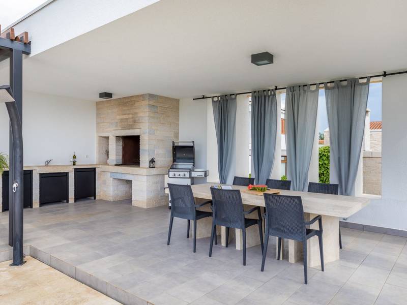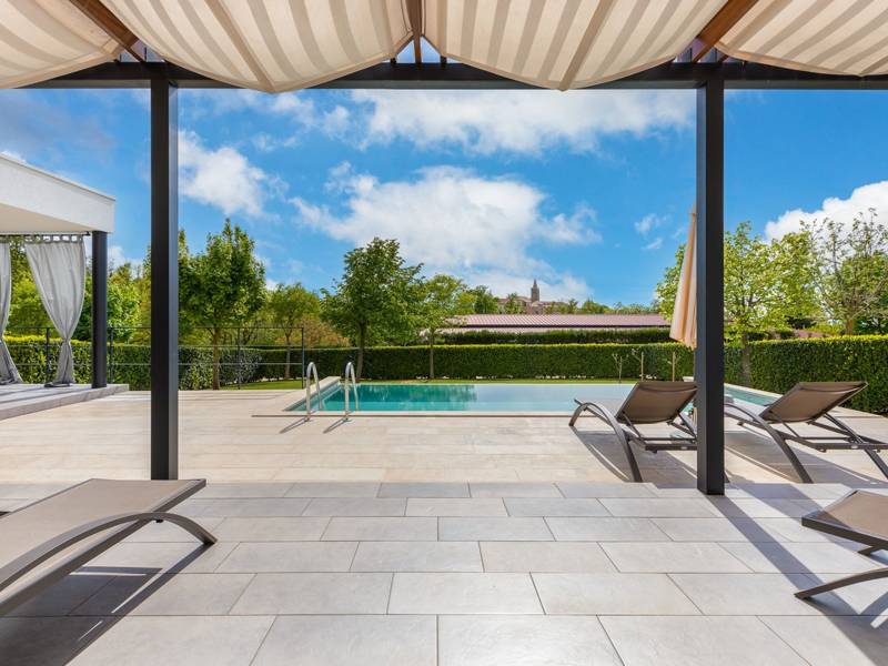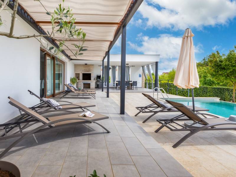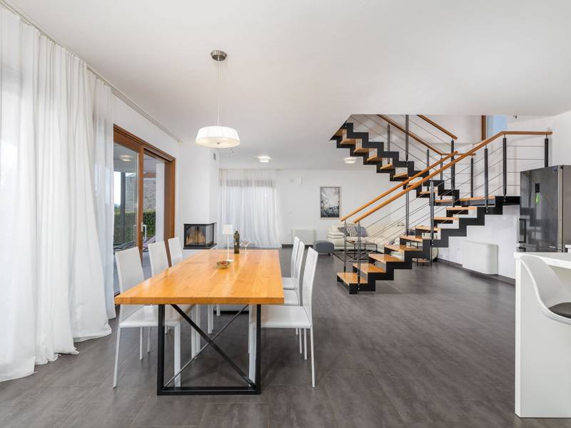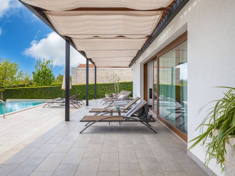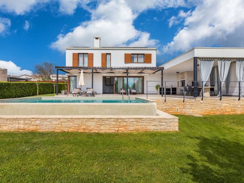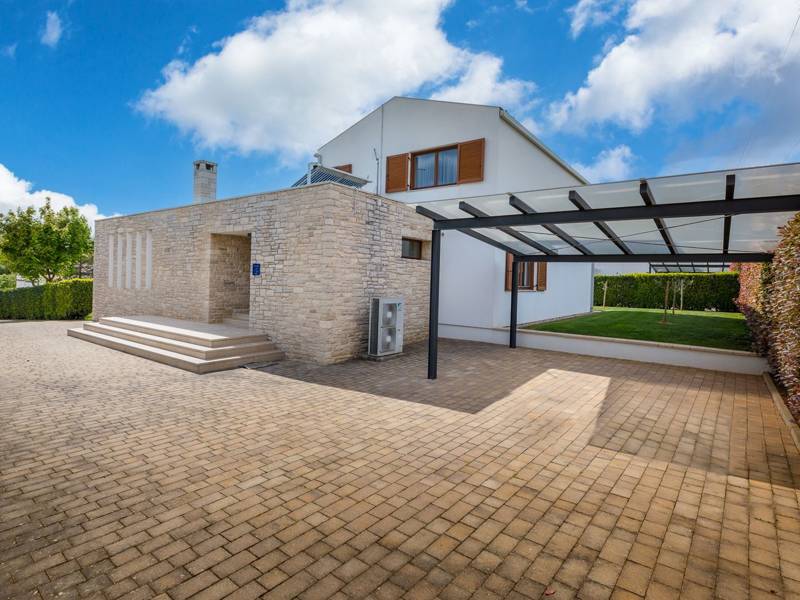 Ontsnap naar Villa Terra Grigia, een prachtig verblijf in mediterrane stijl in het dorp Sveti Petar u Šumi, in het hart van Centraal-Istrië. Deze prachtige villa maakt deel uit van een klein, exclusief complex van vijf villa's, die privacy en luxe bieden. Villa Terra Grigia combineert moderne elegantie met traditioneel design, waardoor een warme en gastvrije sfeer ontstaat. Het beschikt over drie prachtig ingerichte slaapkamers, twee moderne badkamers en een ruime open woonkamer die overloopt in een volledig uitgeruste keuken, zodat aan elk huiselijk comfort is voldaan. Stap naar buiten naar het charmante terras, waar een prachtig overloopzwembad wacht om een verfrissende duik te nemen onder de zonnige Istrische hemel. Het terras is ook uitgerust met een kookgedeelte, met zowel een gasgrill als kolenopties, perfect voor het bereiden van heerlijke maaltijden. De villa biedt comfortabel plaats aan maximaal 6 personen, waardoor het ideaal is voor gezinnen of kleine groepen die op zoek zijn naar een sereen uitje. Bovendien voegt een overdekte parkeerplaats voor twee auto's een extra laag gemak toe. Ontdek de charme van Istrië vanuit Villa Terra Grigia, waar traditionele charme samenkomt met modern leven, allemaal gelegen in een rustig dorpslandschap. Hier belooft elke dag ontspanning en verjonging in je eigen stukje paradijs.