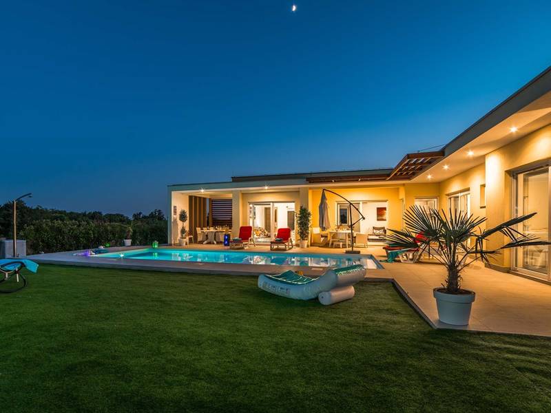 Welkom in Villa Vita, een vakantiehuis met drie slaapkamers in Istrië, gelegen in het centrale deel van Istrië. Het huis is echt modern en zo licht dat het je uitnodigt met zijn gastvrije uitstraling. Dit gelijkvloerse huis heeft een zeer goede kamerindeling met elk een uitgang direct naar het zwembad. De familiekamer bestaat uit een moderne, goed uitgeruste keuken en een eetkamer die doorlopen naar een gezellige woonkamer. De omgeving van de villa biedt volop mogelijkheden om te wandelen door de natuur, maar ook om te fietsen. Afhankelijk van je voorkeur kun je excursies van een halve dag maken naar een van de nabijgelegen attracties, bijvoorbeeld in Rovinj, Poreč, Pula of Svetvinčenat. In sommige accommodaties zijn geen groepen jongeren toegestaan. Als je als groep jongeren een accommodatie boekt, neem dan contact op met ons agentschap voordat je de reservering maakt om te controleren of de gevraagde accommodatie jullie verblijf toestaat.