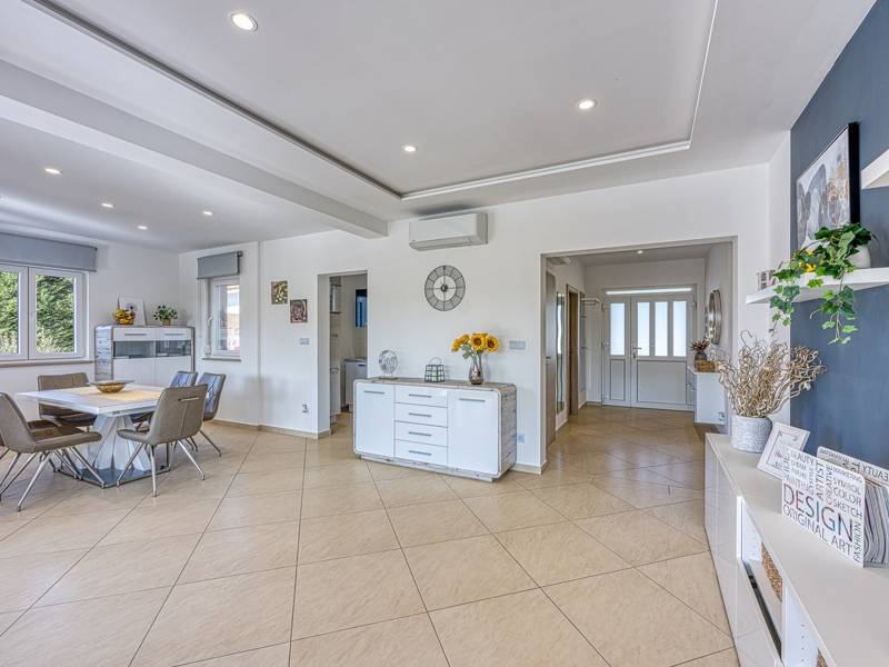Ons mooie vakantiehuis ligt in het idyllische dorpje Bašići, niet ver van het pittoreske Tinjan. Dit huis biedt de perfecte combinatie van comfort, moderne stijl en natuurlijke omgeving, waardoor het de perfecte keuze is voor jouw vakantie. Het huis heeft drie ruime slaapkamers, wat ideaal is voor grotere groepen of families die de vakantie samen willen doorbrengen. De slaapkamers zijn smaakvol ingericht. Twee badkamers bieden voldoende ruimte voor alle gasten, en moderne apparatuur en kwaliteitsmaterialen zorgen voor je comfort. De grote woonkamer is het centrale deel van het huis en biedt veel ruimte voor gezelligheid en ontspanning. De open ruimte met keuken, eetkamer en woonkamer creëert een aangename sfeer, en grote glazen wanden bieden een prachtig uitzicht op de tuin. Hier vind je een comfortabele hoek om te ontspannen, tv te kijken of een boek te lezen. Vanuit de woonkamer ga je naar buiten naar een ruim terras, waar je kunt ontspannen in de frisse lucht. De tuin rondom het huis zal je verrukken met zijn schoonheid en vredige sfeer. Je zult genieten van het gevoel van privacy en stilte terwijl je ontspant bij het privézwembad. Het zwembad is ideaal voor verfrissing op warme zomerdagen, en eromheen staan veel ligstoelen om te zonnebaden. Er is ook een BBQ-ruimte waar je heerlijke maaltijden kunt bereiden voor je familie en vrienden. Dit vakantiehuis in Bašići, naast Tinjan, is de perfecte keuze voor iedereen die op zoek is naar een rustige vakantie, weg van de drukte van de stad. Moderne apparatuur, ruime kamers, een prachtige tuin met een zwembad en een BBQ-ruimte maken het een buitengewone bestemming om te ontspannen en te genieten van de Istrische charme.