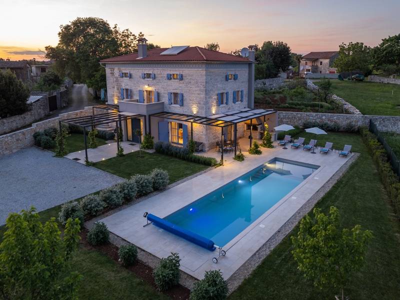 Villa Pi is een prachtige stenen villa gelegen in het dorp Brečevići in centraal Istrië. De villa heeft 4 slaapkamers en is geschikt voor 8 personen, waardoor het perfect is voor een familievakantie. Het interieur van het huis is uitgerust met moderne en hoogwaardige meubels. Op de begane grond van het huis, die direct toegang heeft tot het zwembad, is er een volledig uitgeruste keuken met een eethoek en een grote woonkamer met een open haard. Op de eerste verdieping zijn er 2 slaapkamers, een met een tweepersoonsbed en een met 2 eenpersoonsbedden. De overige 2 kamers, beide zeer ruim en voorzien van tweepersoonsbedden, bevinden zich op de tweede verdieping. Alle kamers zijn voorzien van airconditioning en een eigen badkamer, zodat gasten optimaal kunnen genieten van hun intimiteit. Villa Pi beschikt over een groot zwembad (50 m2), dat op verzoek van de gasten en tegen extra kosten kan worden verwarmd. Breng uw vakantie door met uw gezin in Villa Pi en ervaar de charmes van het Istrische dorp.