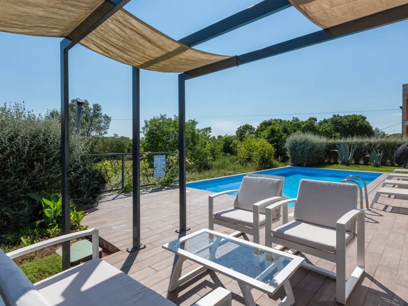 Een perfecte vakantie wacht op je met een verblijf in de prachtige Villa Chic, gelegen in het rustige dorpje Valica, niet ver van Umag. De villa biedt volledige privacy en comfort en is een uitstekende keuze voor een uitje voor een klein gezin of een groep vrienden van maximaal 4 personen. Deze volledig van airconditioning voorziene villa is tot in het kleinste detail ingericht om het comfort van je eigen huis te bieden. Tot je beschikking staan twee slaapkamers met tweepersoonsbedden, elk met een eigen en-suite badkamer met een inloopdouche. De ruime benedenverdieping van het huis biedt een volledig uitgeruste moderne keuken voor het bereiden van heerlijke gerechten die je kunt serveren aan de aangrenzende eettafel. Er is ook een comfortabele woonkamer met glazen deuren die direct toegang geven tot de binnenplaats en ongehinderd daglicht doorlaten. Op de charmante binnenplaats is het belangrijkste accent zeker het zwembad met de bijbehorende ligstoelen, om de hele dag te genieten in de warme mediterrane zon. Er staat een gasgrill tot je beschikking, evenals een loungeplek buiten, om 's ochtends koffie te drinken in de rust die je omringt.