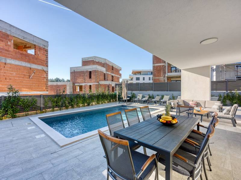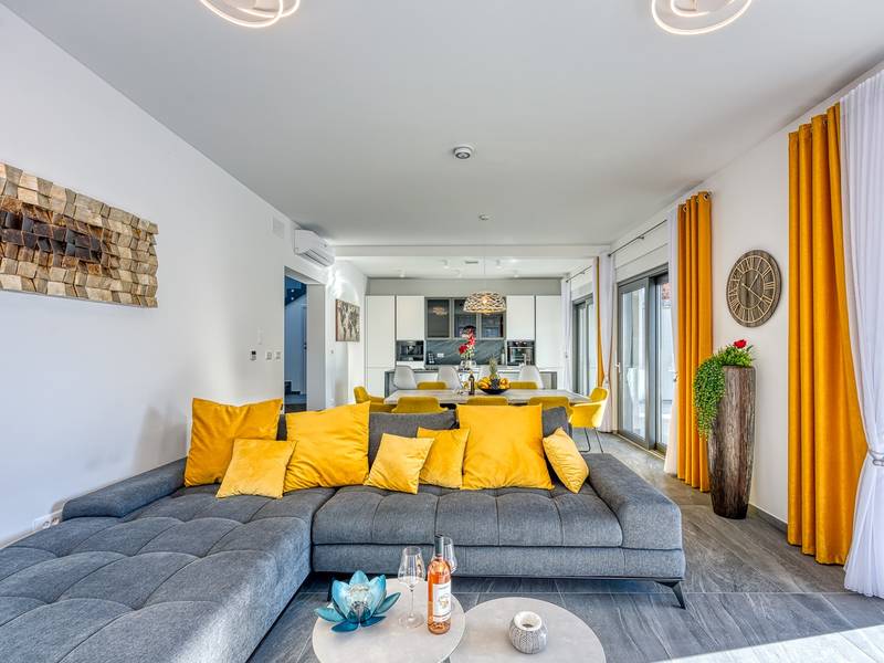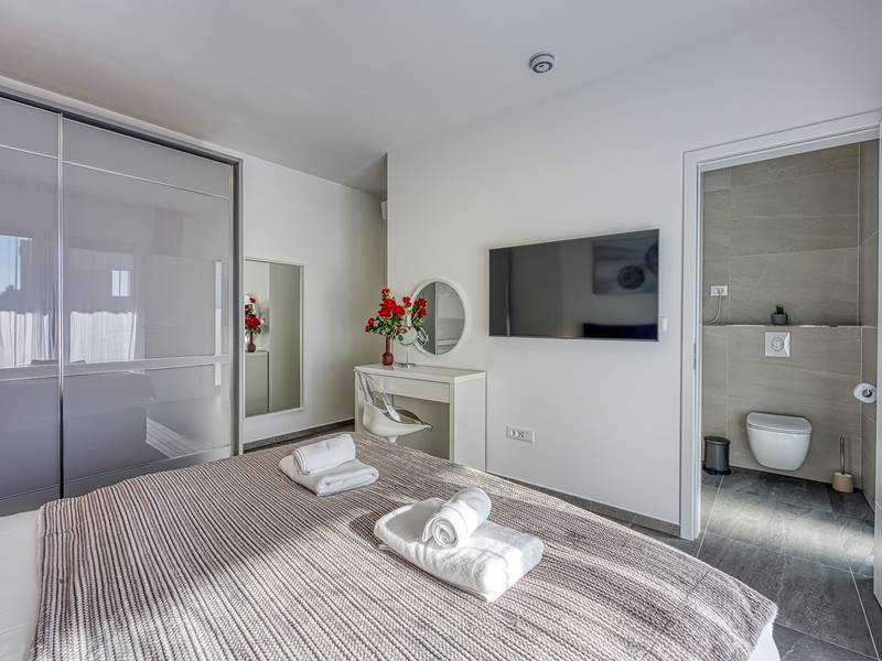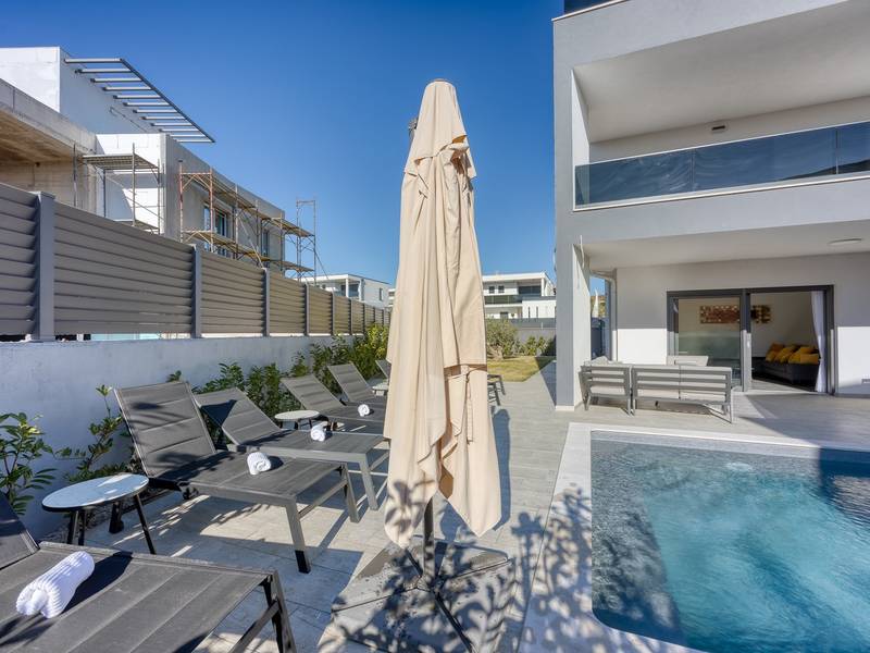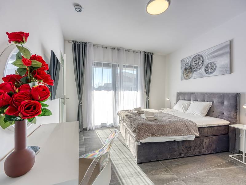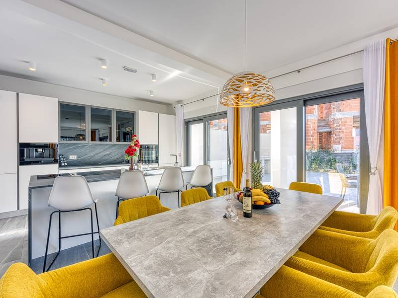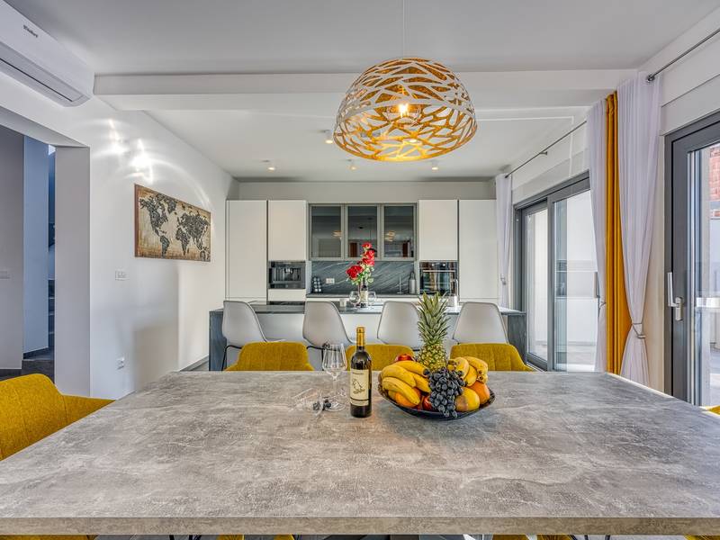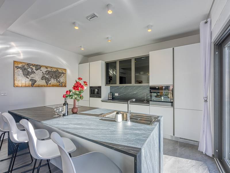 Hedendaagse Villa Venus in Vabriga is een nieuw gebouwde, moderne luxe villa met privézwembad, sauna en jacuzzi. Het bestaat uit drie slaapkamers en is geschikt voor maximaal 8 personen. De begane grond heeft een grote woonkamer met een bank, een volledig uitgeruste keuken, een slaapkamer en een badkamer. Op de 1e verdieping zijn 2 slaapkamers met een tweepersoonsbed en 2 badkamers met een douche. Op de bovenste verdieping is er een wellnessruimte, waar je kunt genieten in een jacuzzi, sauna en fitnessapparatuur. Buiten in de tuin kunnen de gasten ontspannen in een privézwembad of gezellig samenzijn met hun favoriete barbecuegerechten. De villa is volledig voorzien van airconditioning, vloerverwarming en 2 parkeerplaatsen voor het huis. Als je van plan bent om een ontspannen, rustige vakantie door te brengen in een luxe villa aan zee, dan is Villa Venus de juiste keuze. Huisdieren zijn toegestaan.
