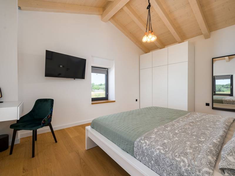 Welkom bij jouw perfecte uitje in Pula! Deze charmante villa, gelegen op een rustige locatie, beschikt over een privézwembad en een ruime tuin, waardoor het een ideaal toevluchtsoord is voor ontspanning en plezier. De villa biedt plaats aan maximaal 5 gasten en is zorgvuldig ontworpen voor comfort en gemak. Op de begane grond vind je een open keuken, eetkamer en een gezellige woonkamer met een slaapbank voor één persoon en een badkamer. De eerste verdieping biedt twee uitnodigende slaapkamers, elk met een tweepersoonsbed, tv en airconditioning, die zorgen voor rustgevende nachten en moderne voorzieningen. Of je nu van de zon geniet bij het zwembad of van een maaltijd in de tuin, deze villa biedt een heerlijke ontsnapping voor gezinnen en kleine groepen. Kom en ervaar de schoonheid en sereniteit in dit prachtige thuis weg van huis.