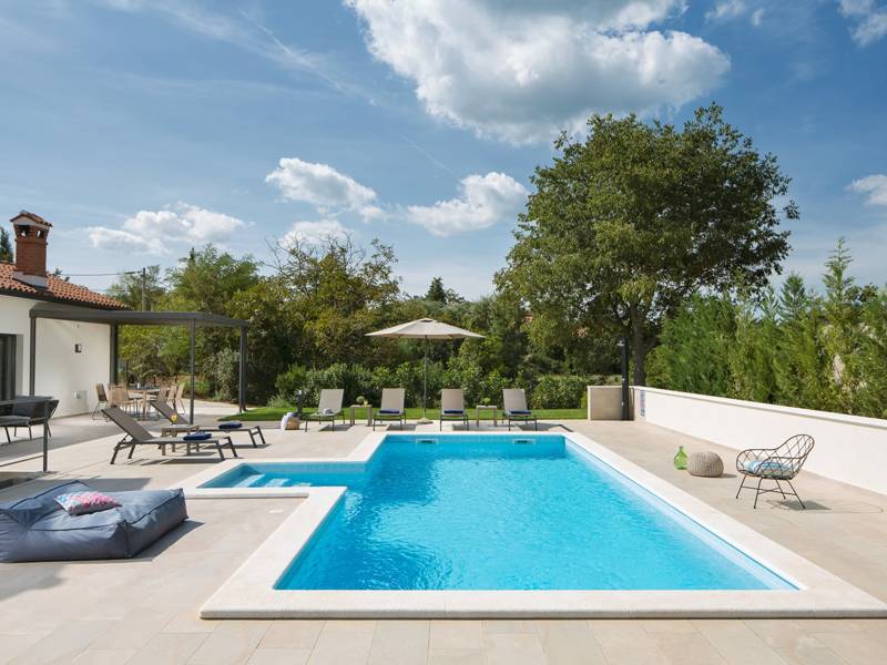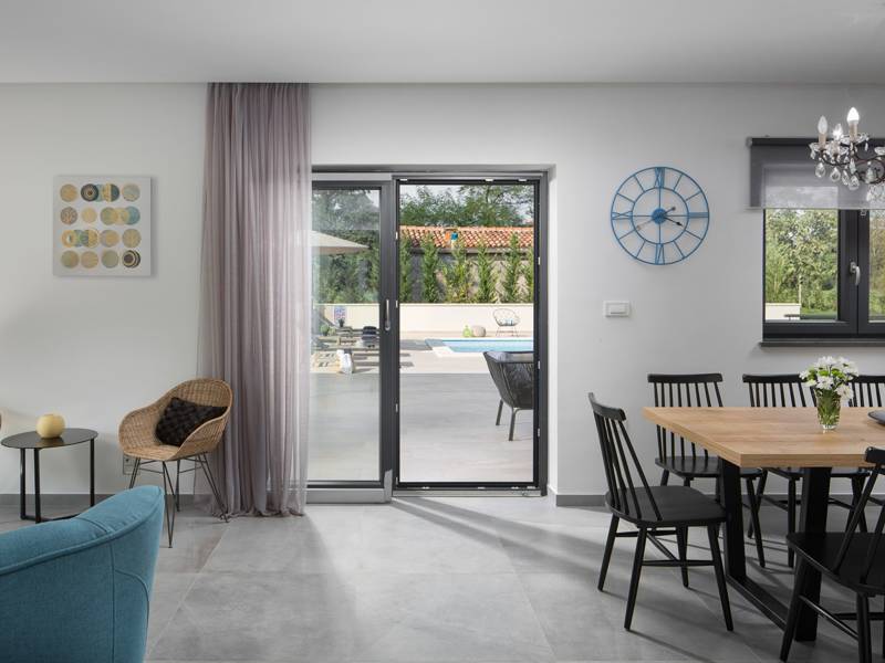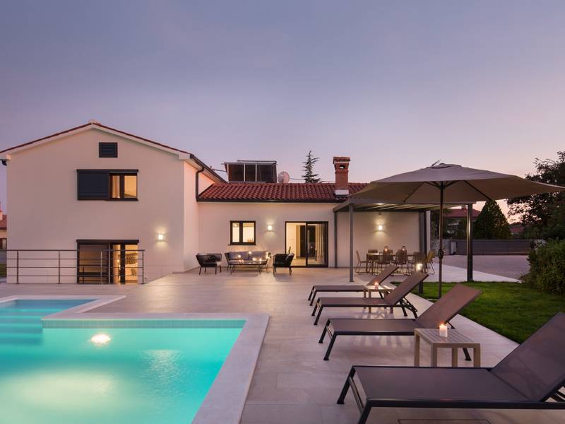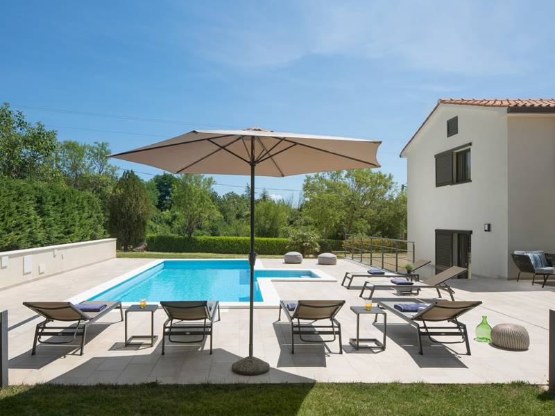 Gelegen aan de oostkust van het schiereiland Istrië, in het pittoreske stadje Labin, is de prachtige Villa del Sol omgeven door mediterraan groen en biedt gasten volledige privacy en rust. De volledig van airconditioning voorziene villa biedt 200 m2 woonruimte en beschikt over vier slaapkamers, drie met tweepersoonsbedden en een met twee eenpersoonsbedden. Elke slaapkamer heeft een eigen badkamer met douche, vloerverwarming en een tv, terwijl er ook een apart toilet beschikbaar is. De open begane grond heeft een moderne, volledig uitgeruste keuken, een lichte eethoek en een ruime woonkamer die ideaal is om te ontspannen. De volledig omheinde tuin van 800 m2 beschikt over een privézwembad van 9,5 x 3,5 m, ligstoelen, parasols, een comfortabele zithoek buiten, een barbecue en een overdekte eethoek voor acht gasten, evenals vier privéparkeerplaatsen. Labin betovert bezoekers met zijn rijke aanbod en historische oude stad met Venetiaanse, gotische, renaissance en barokke architectuur, en ligt op slechts 5 km van Rabac en zijn prachtige kiezelstranden, waardoor Villa del Sol een uitstekende keuze is voor een ontspannen vakantie in Istrië.