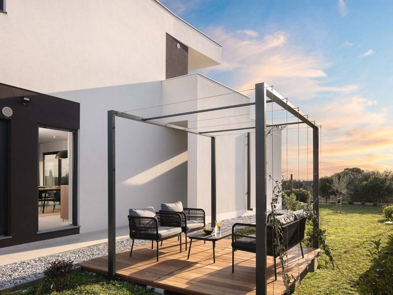 Je zult versteld staan van de schoonheid en functionaliteit van deze moderne schoonheid. Het staat in een kleine stad in de buurt van Pula, de grootste stad in Istrië. De perfecte locatie in een doodlopende straat zonder verkeer zorgt voor constante stilte. De villa is georiënteerd op het zuidwesten en elke kamer biedt een prachtig uitzicht op de zee en de natuur. Het moderne interieur zal liefhebbers van esthetiek bekoren. Het bestaat uit 4 slaapkamers, elk met een eigen badkamer. Er zijn vier badkamers en een extra toilet en het is een goede keuze voor acht personen. Elke kamer heeft toegang tot een ruim terras dat een uniek uitzicht biedt op de zonsopgang in de zomeravonden. De villa is omheind zodat je volledige privacy hebt. De buitenruimte bestaat uit een groot privé hydromassagezwembad met zout water, een buitenhaard, een ontspanningsruimte en een terras. Het dichtstbijzijnde strand ligt op slechts 600 meter afstand. In de buurt zijn restaurants en winkels. Het is perfect voor alle liefhebbers van een rustige vakantie, in stilte, en natuurlijke schoonheid, maar het is ook een perfecte keuze voor avonturiers. Vlakbij ligt Pula, dat een rijk nachtleven en verschillende evenementen biedt, en aan de andere kant ligt het prachtige Kamenjak. Op Kamenjak kun je de overblijfselen van dinosaurussen zien, veel strandbars, stranden en avontuurlijke fietspaden. Sommige accommodaties laten geen jeugdgroepen toe. Als je als groep jongeren een accommodatie boekt, neem dan contact op met ons agentschap voordat je de reservering maakt om te controleren of de gevraagde accommodatie je verblijf toestaat. De minimumleeftijd voor het boeken van accommodatie is 30 jaar. Groepen jonger dan 30 jaar zijn niet toegestaan.
