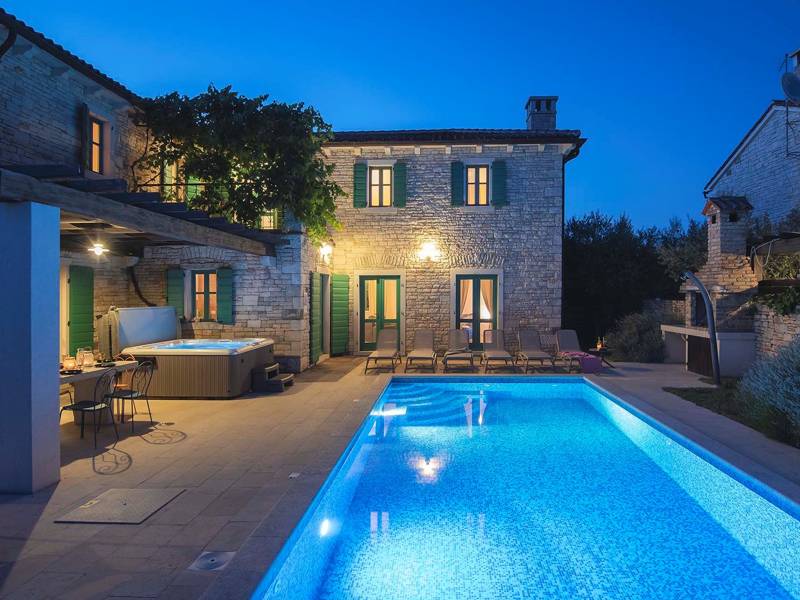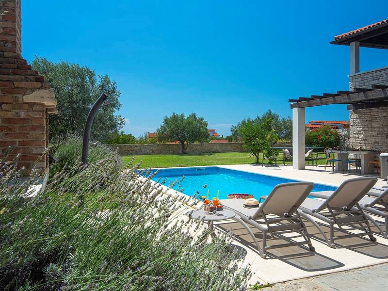 Villa Lucia is een nieuw gebouwde stenen villa met een architectuur waarin hedendaags en traditioneel samenkomen, wat een sierlijke en oogstrelende uitstraling geeft. De accommodatiecapaciteit is voldoende voor twee gezinnen met een volledig comfort met alle moderne apparatuur, airconditioning, 4 slaapkamers met badkamers en nog een wasruimte op de begane grond. Twee extra bedden of wiegjes zijn beschikbaar op aanvraag, net als een kinderstoel. De locatie van Villa Lucia is erg goed, want het ligt in het rustige gedeelte van Vodnjan, een klein stadje op slechts een paar kilometer afstand van de zee, en er is een prachtig uitzicht op zee vanuit de villa, evenals op de eilanden Brijuni en de nabijgelegen stad Pula. Sommige accommodaties laten geen jeugdgroepen toe. Als je als groep jongeren een accommodatie boekt, neem dan contact op met ons agentschap voordat je de reservering maakt om te controleren of de gevraagde accommodatie jullie verblijf toestaat.