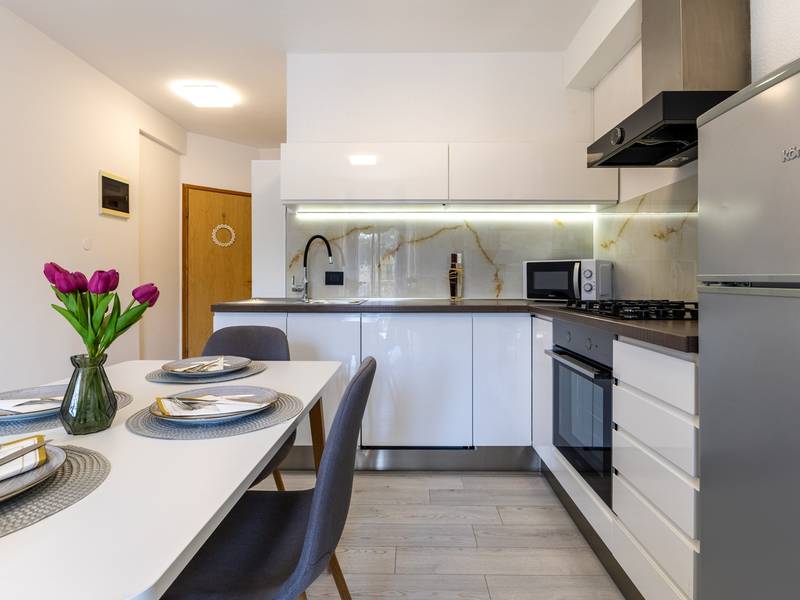 Het appartement voor 4 personen is gelegen op de tweede verdieping in een rustig deel van Vrsar, ideaal voor een ontspannen vakantie. Het bestaat uit een slaapkamer met een comfortabel tweepersoonsbed en een woonkamer met een slaapbank, waardoor het geschikt is voor een gezin of een kleinere groep. Gasten hebben de beschikking over een volledig uitgeruste keuken met een eethoek, een badkamer met een douche en een wasmachine, evenals een balkon perfect voor koffie in de ochtend of ontspanning in de avond. Het appartement beschikt ook over een beveiligde parkeerplaats. Het ligt op ongeveer 1000 meter van de zee en 800 meter van het centrum van Vrsar, waardoor je gemakkelijk toegang hebt tot stranden, restaurants en alle belangrijke voorzieningen, met voldoende rust en privacy tijdens je verblijf.